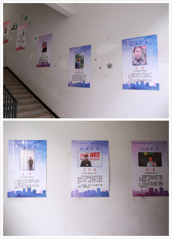 自2011年合川校区第一届毕业生以来,通信与信息工程系向社会输送人才7千余人,其中绝大部分毕业生活跃在通信领域的各个环节中,考取研究生者也层出不穷,多数毕业生就职于中国移动、中国联通、中国电信、重庆信科集团等知名企业。不乏更多优秀毕业生在腾讯、360、小米通信等企业从事相关工作。各届各专业的就业标兵和考研标兵展示在楼梯两侧。