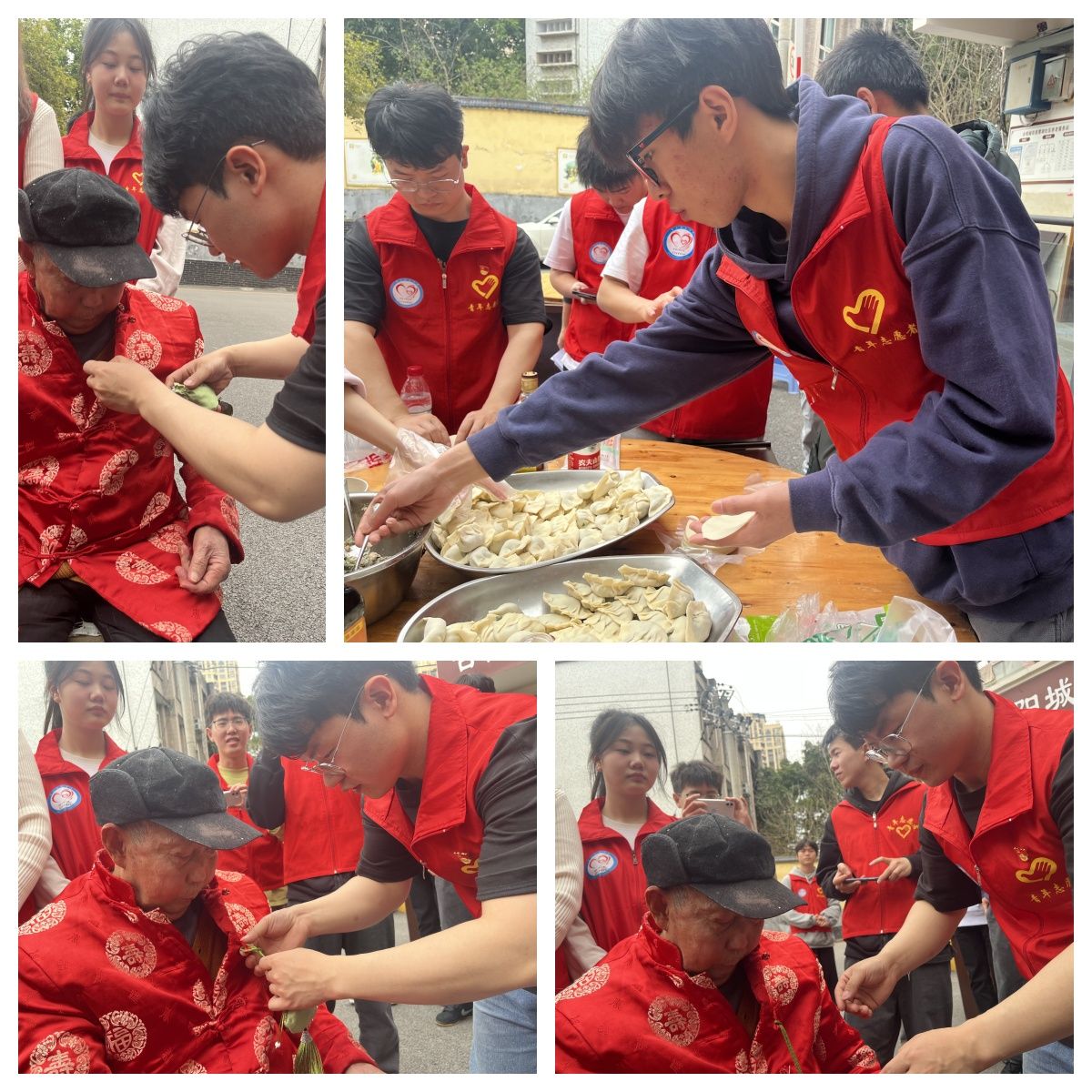 随后,党员、团员参与到了为老人们包饺子、制作香囊的活动中。党员同志邹腾分享道,我从他们的眼神看到了孤独、期待和渴望被关心,志愿者的自我价值需要通过实践去真正的体会存在的意义。故人不在,亲人未来。树欲静而风不止,子欲养而亲不待。作为一名党员,一名志愿者,我们应当成为有担当、有责任感的新时代新青年,去温暖他人。养老院真是一个可以治愈自我的地方,在这里即使言语不通,即使共同话题少之又少,可我们的肢体语言能了解到他们的开心与快乐。