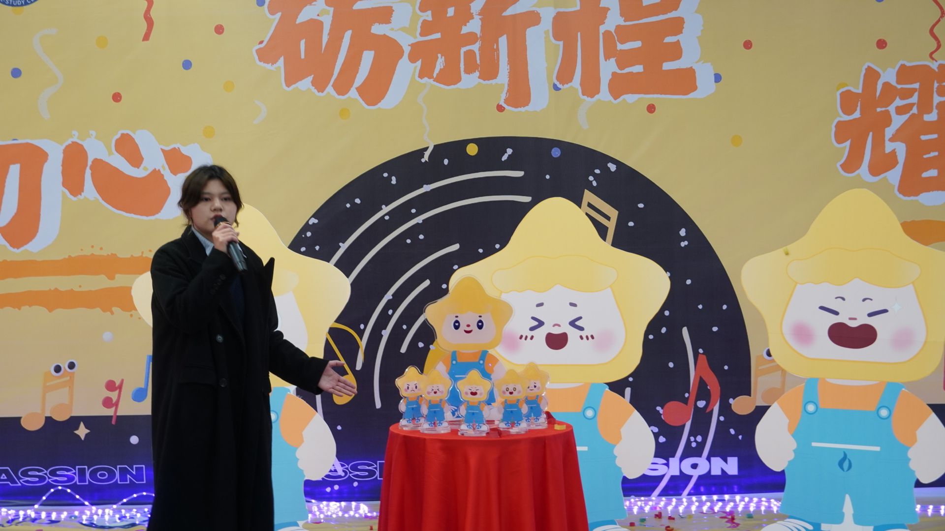 月亮是渐熄的篝火,星星是不灭的火花。学生处处长陈帅揭幕了学生处勤工助学中心IP形象“勤小星”,冉春芬主席介绍该形象寓意,“这一形象以星星为主,象征追求卓越与坚持自我。而勤工助学旨在助贫助学、提供实践机会。这一IP的设计结合两者,鼓励学生自立自强,如星星照亮求学路,充分展现了学生处勤工助学中心的创造力与智慧。”勤小星的亮相成为了本次交流会的一大亮点,鼓励每位学子自立自强,如同夜空中最亮的星,照亮求学之旅,也映照出学生处勤工助学中心的无限创意与深邃智慧。