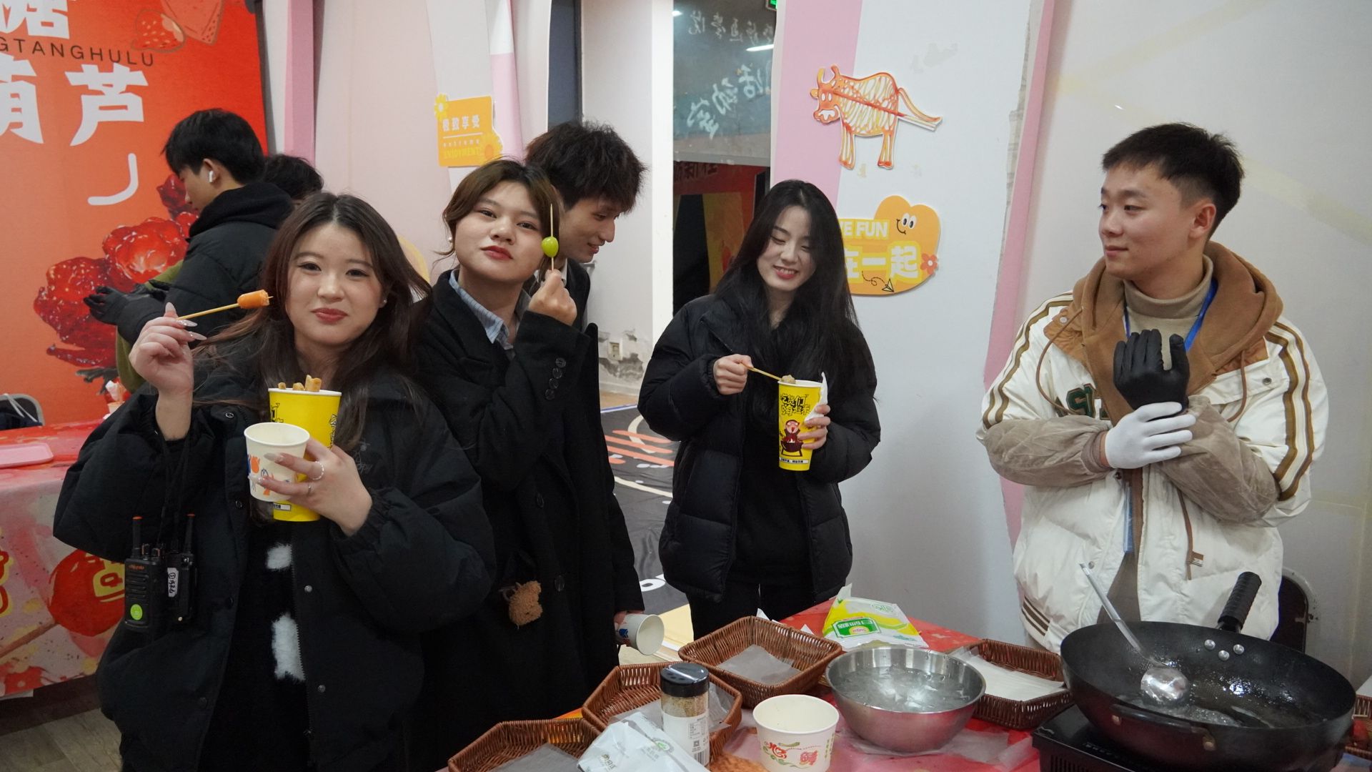 大雪纷飞漫天舞,银装素裹满人间。年末大雪纷飞时,重庆移通学院资助育人交流会,特设饺子汤圆、糖葫芦糖画及关东煮分会场。饺子汤圆寓意着团圆与希望,让贫困学子深切感受到家的温暖;糖葫芦糖画区域色彩斑斓,传统美食的甜蜜与师生们的赞叹交织在一起,美食的愉悦在这里传递,体现了学校对贫困学生细致入微的关怀;关东煮分会场热气腾腾,宛如冬日里的暖阳,温暖着每一位贫困学子的心。各分会场不仅为大家带来了美食的享受,更深刻地传达了学校资助育人政策的温暖与力量,让学子们在寒冬中感受到了无尽的温情与希望。活动场地热闹非凡,其间穿插的小游戏,“你画我猜”“不听指挥”等,更是将气氛燃至沸点。 每一口热食,皆是对明日辉煌的温柔期许,借资助之光,让这个冬日盈满温情。