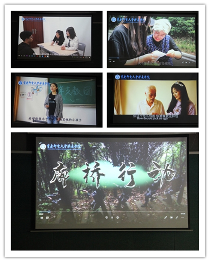 大赛在阵阵掌声中正式拉开帷幕,此次活动从四月开始启动,经过组织报名、教师指导、作品初选、教研室复选等环节,最终各教研室从844个微视频、微电影中选拔出了10个精品,再经过打磨、修改和处理进入到最终决赛。所有参赛作品内容涉及面广,素材取自生活,拍摄视角新颖,后期制作精良,充分体现了当代大学生思维活跃、善于观察生活、实践能力强的特性,也印证了将课堂与实践结合,能够让抽象的思政理论知识变得生动鲜活。在决赛中,《廊桥行动》、《挂念》从不同视角展示了主角的爱国主义情怀,为了保家卫国不惜牺牲个人,使莘莘学子回归当下并激励其秉承爱国奉献精神;《“贷”价》、《别让他靠近你》两部作品通过现实案例改编,真实再现了大学生深陷“校园贷”的泥潭,呼吁同学们“远离校园贷,青春不欠债”;《我不是羔羊》比较详细地还原了人贩子针对女大学生的新型犯案过程,让学生深刻感受到防骗的重要性;《三尺之梦》讲述的是青年女学生怀揣教师的梦想,并通过不懈的努力最终实现梦想的故事;《迟到的忏悔录》形象生动的呈现了毒品的罪恶,坚定了观众“远离毒品”的决心;《回家》反映了当前空巢老人的社会问题,呼吁大家多关心老人,常回家看看;《弱国无外交》根据《马关条约》签订的历史事实展开,再现历史情境,使观众身临其境地体会到“弱国无外交”的无奈;《太阳花》呈现出一批默默无闻的志愿者扎根农村服务农村,以实际行动帮助农村孩子学习,为他们心灵构建温暖的港湾。