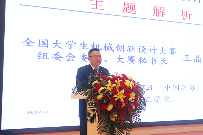 首先,盐城工学院副校长王资生到会讲话,介绍了学校的发展定位、目标思路和近几年围绕应用型人才培养,在学科竞赛中所取得的成绩,并提出希望与会领导专家关心支持学校事业发展,保持交流与合作。随后,全国大学生机械创新设计大赛组委会秘书长、西安交通大学王晶教授对第十届全国大学生机械创新设计大赛的主题“自然•和谐”作了深度解析,希望各参赛院校认真研读大赛文件,准确把握大赛主题,制作出优秀的作品,在明年的大赛中取得优异成绩。