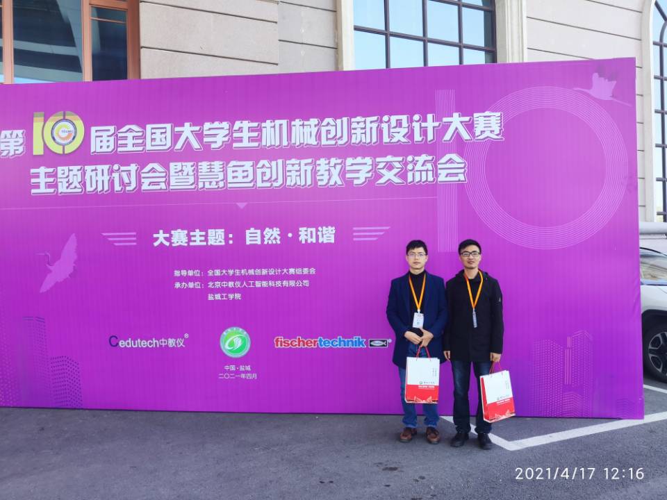 4月17日上午8点,由盐城工学院承办的第十届全国大学生机械创新设计大赛主题研讨会暨慧鱼创新教学交流会在盐城召开,来自全国各地200余所高校的近400名专家学者参加会议。我校智能工程学院选派电气工程及自动化教研室陈龙灿老师、机械教研室张鹏老师参会,旨在更好地了解大赛动向,并与行业专家交流,讨论大赛主题,学习大赛经验,交流创新成果,促进我校的学科竞赛水平进一步提升,推动教育教学改革,助力专业建设发展。