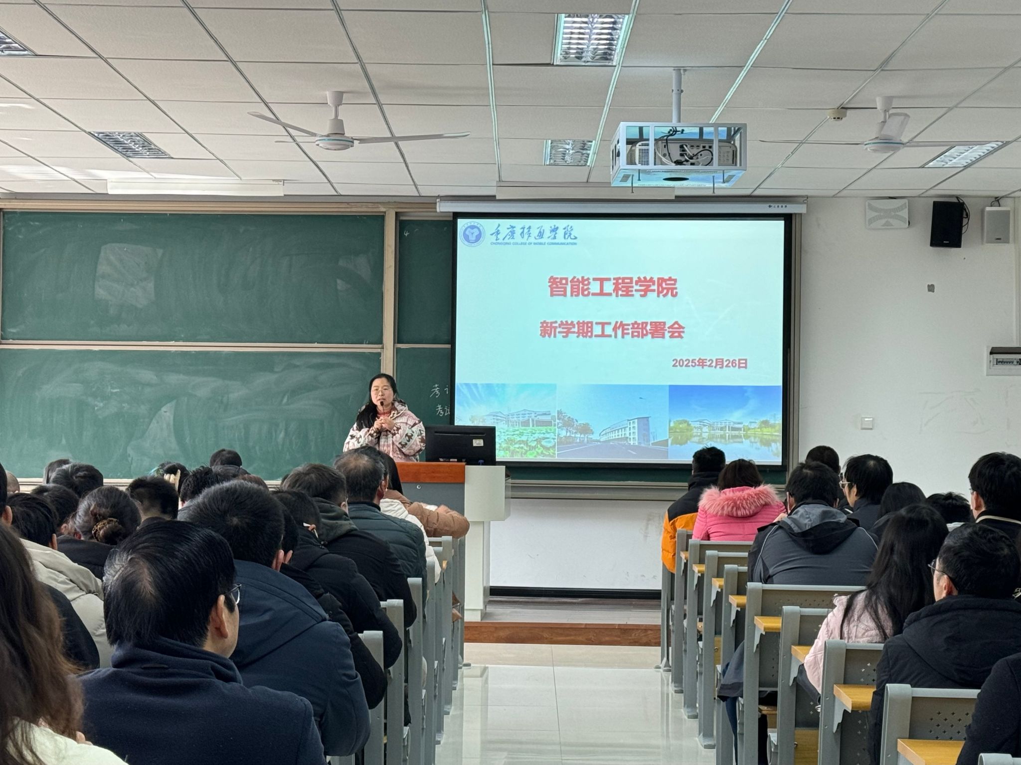 为推进新学期学院各项工作有序开展,2月26日下午2点,智能工程学院于9201召开新学期工作部署会,全面总结上学期工作成果,并对新学期各项工作进行安排部署,会议由智能工程学院教学副院长李洁主持,学工副院长祝玮和学院全体教职工参会。