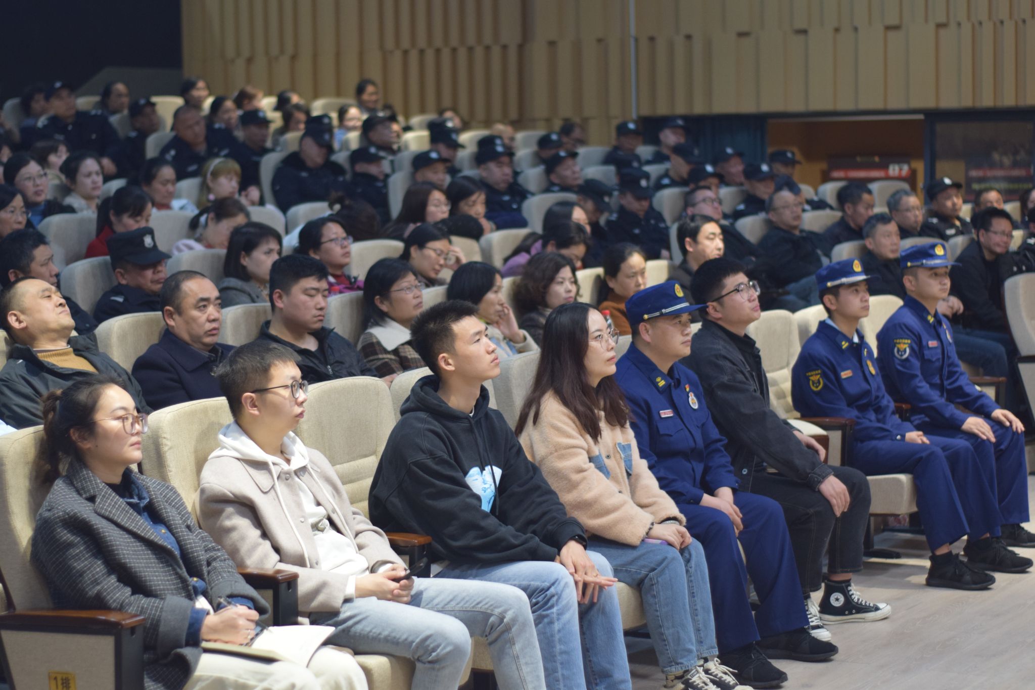为进一步加强公寓服务、管理工作,切实提升学生公寓内各岗位工作人员的消防能力,掌握消防基础知识和火情处置流程,提升各部门在应急处突中的协调配合能力以及各岗位职工自救、互救能力,打造一支素质过硬、服务优良、工作高效的公寓服务与管理队伍,3月20日下午三点在六度空间-无限多功能厅、黄桷树广场分别开展消防安全知识讲座和技能演练。学生处宿舍管理中心深化校地联合,实现资源共享,特邀合川区消防救援支队花滩特勤站到校现场指导,新华社区和花果山社区工作人员,学生公寓内的一线服务与管理人员,宿舍值班员、安全巡查助理、校保卫、校环卫等共200余人参加消防知识与技能的培训。