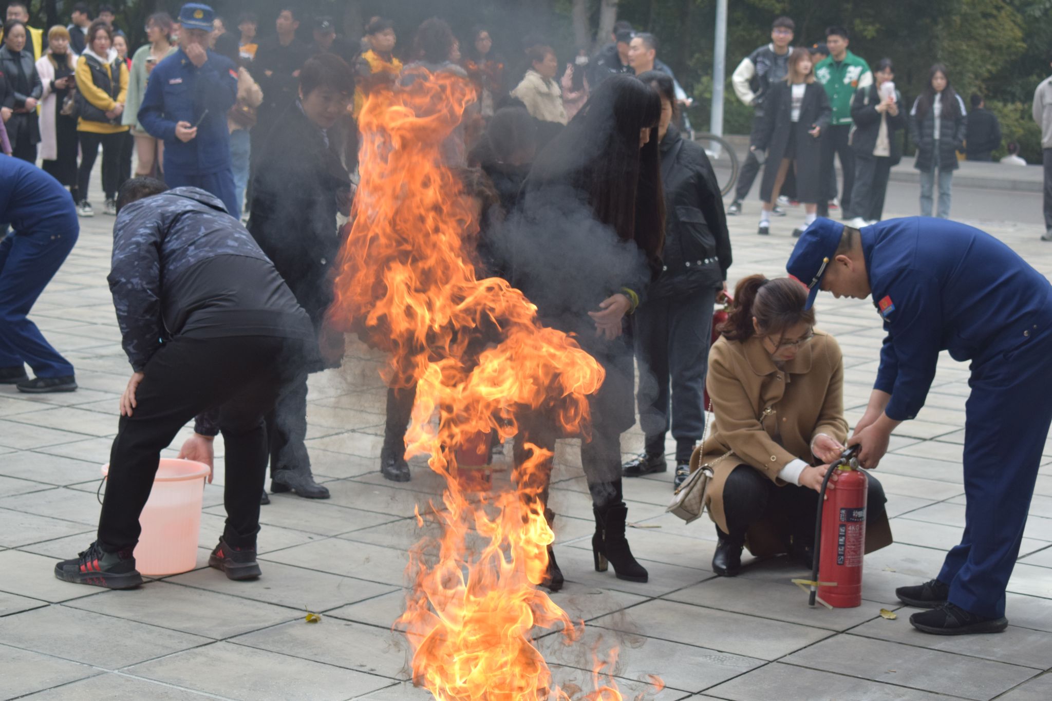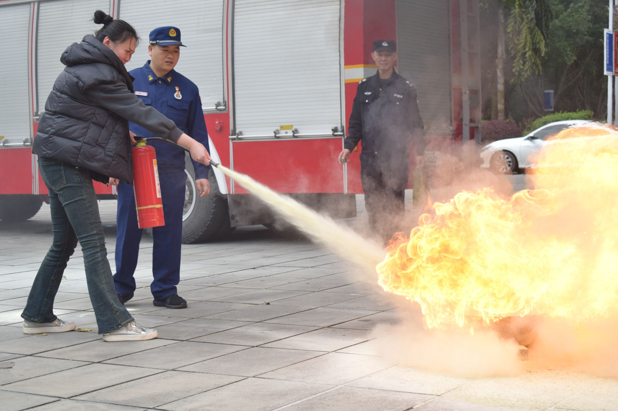 理论讲解结束后,全体人员在黄桷树广场集中实操练习灭火器的使用方法。实操过程中,消防员同志着重强调了最常使用的干粉灭火器的使用技巧和注意事项:“一拉、二对、三压”,消防员同志手把手教学,各参与人员态度热情饱满,逐一开展油盆灭火演练,熟练掌握了灭火器的使用方法,让各参与人员在实际操作中真正掌握扑救初期火灾的技能。