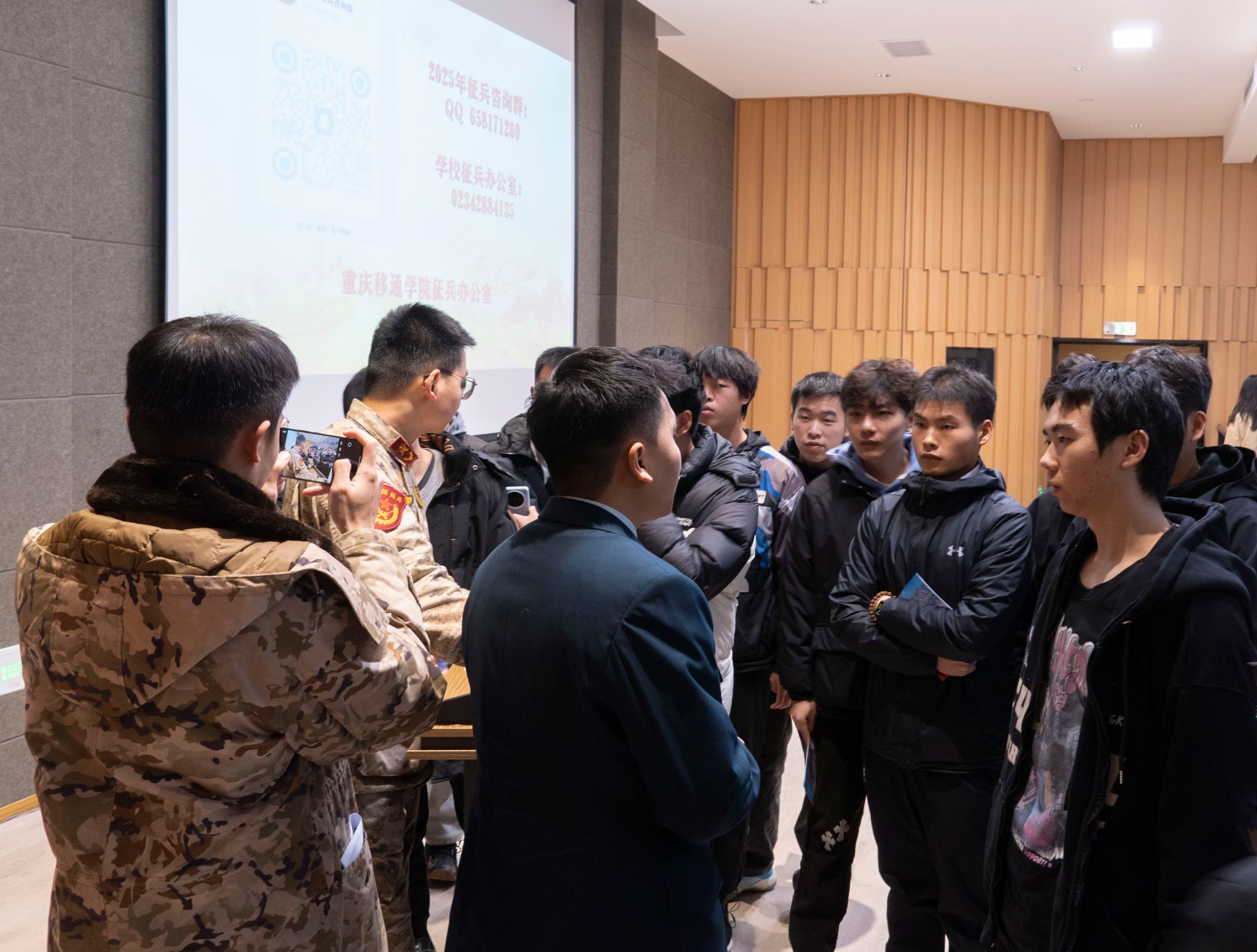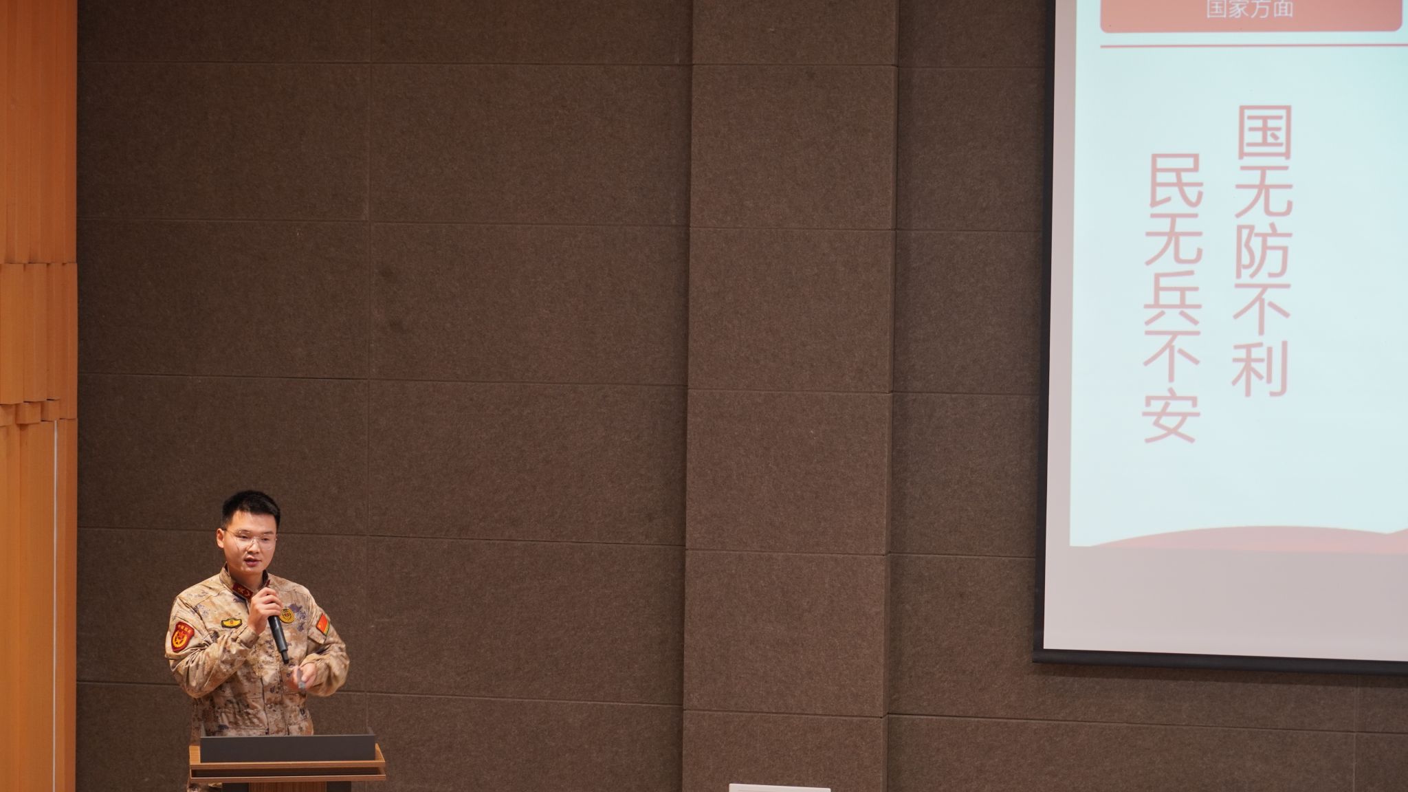 随后,合川区武装部杨参谋展开征兵政策的讲解,他以深刻的国防意识和高度的责任感,对大学生参军的意义进行了全面地阐述并解读了国家征兵政策、应征条件以及大学生参军的具体流程和优惠政策。他强调,当前国防建设迫切需要高素质兵源,鼓励大学生响应国家号召,积极投身军营,为强国强军贡献青春力量。