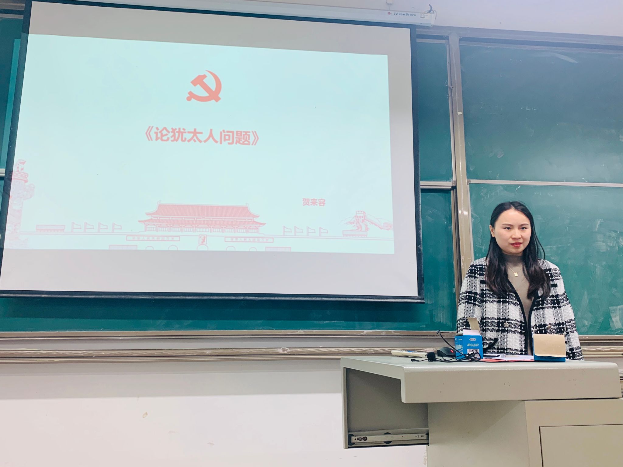 本次研读活动由贺来容老师带来对《论犹太人问题》的解读和分享。贺老师主要从时代背景、重要内容、时代价值三个方面作了解读。首先,从时代背景出发领悟经典。19世纪的欧洲,社会激烈动荡,由于民族和宗教差异,历史上的犹太人不仅难以融入欧洲当地社会,还受到欧洲各国的排挤和压迫。犹太人的政治权利问题在反犹太主义的现实中一直是个严重的社会问题。欧洲社会的一些思想家开始关注犹太人问题,探讨犹太人如何融入欧洲社会,如何获得政治解放。布鲁诺·鲍威尔坚持认为一个以基督教为国教的封建国家本质上是“不会解放犹太人的”,犹太人要获得解放,必须先解放自己,即先要放弃自己的宗教信仰,从而将犹太人解放这个社会问题宗教化。马克思抓住这个机会,在1844年初的《德法年鉴》上发表了《论犹太人问题》一文。其次,该文主要阐述了马克思批驳鲍威尔关于犹太人解放问题的错误观点,并阐发了自己对资产阶级政治解放及其与人类解放关系问题的认识。他认为资产阶级的政治革命把市民社会从封建主义桎梏下解放出来,消除封建等级制和封建特权,这是历史的进步,但是这种政治解放只是市民社会的革命,实现的只是资产阶级的民主自由,还远远不是人的解放。要实现人的解放,就必须突破资产阶级政治解放的历史局限性,最终实现无产阶级及全人类的解放。最后,阐述了《论犹太人问题》一文的时代价值。马克思阐发了自己对资产阶级政治解放及其与人类解放关系问题的认识,并用带有人本主义色彩的语言表现出历史唯物主义意识和共产主义意识思想的萌芽,显现出马克思已经完成从唯心主义向唯物主义、从革命民主主义向共产主义的转变。《论犹太人问题》和《〈黑格尔法哲学批判〉导言》的发表标志着马克思世界观“两个转变”的“彻底完成”。