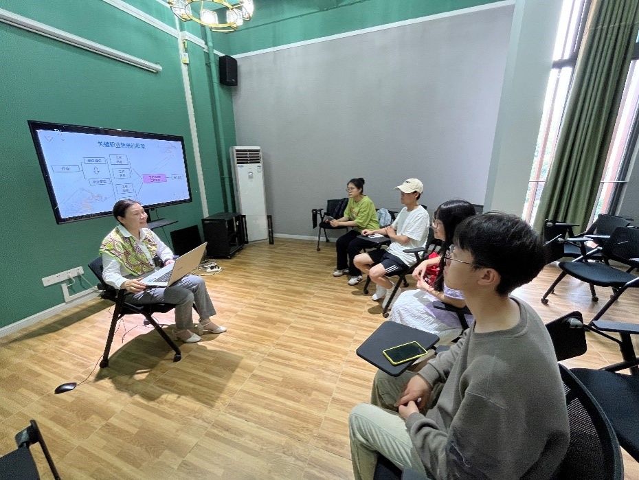本次交流会同学首先进行自我介绍,然后杨华琼老师从“用户+产品”思维角度,为同学分享在学业及职业过程中,如何运用SWOT、STAR工具方法,丰富自己学业及职业,书写出具有符合时代发展及人岗匹配的简历,提高职场技能,规划好自己职业生涯。