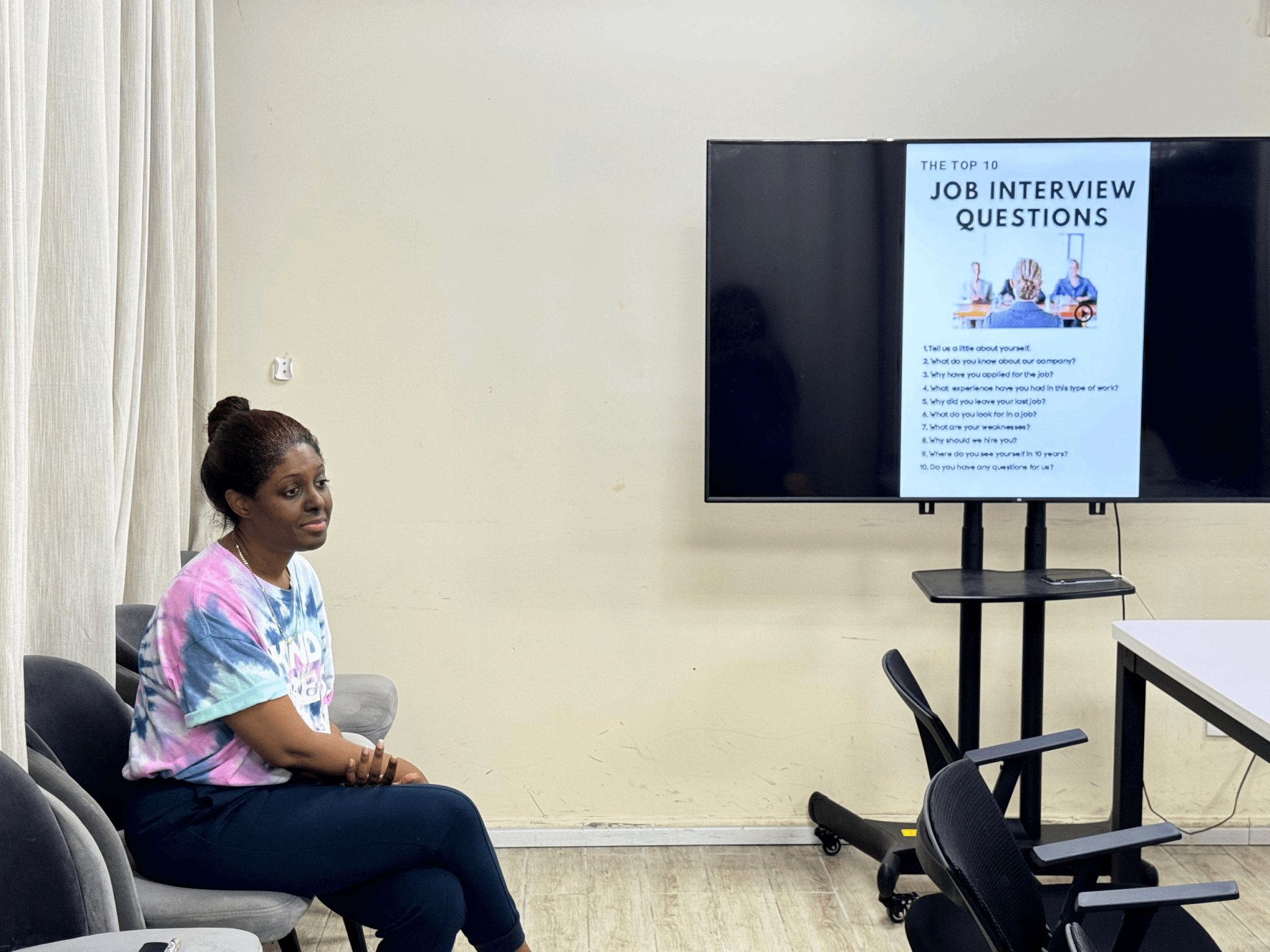 接下来的环节中,Kristen分享了一系列通用的面试技巧。她提到,清晰的表达、自信的态度和适当的肢体语言是面试中不可或缺的元素。为了让同学们更好地掌握这些技巧,Kristen现场演示了正确的坐姿、眼神交流以及如何有效地回答问题。她还特别强调了倾听能力的重要性,指出这是面试中经常被忽视的一个环节。