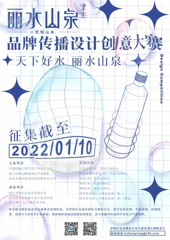 此次大赛由中国机械工程学会工业设计分会、海上丝绸之路创新设计产业联盟、丽水市城投公司联合主办,浙江万物生长水业有限公司、温州商学院传媒与设计艺术学院、浙江理工大学欧海研究院联合承办。