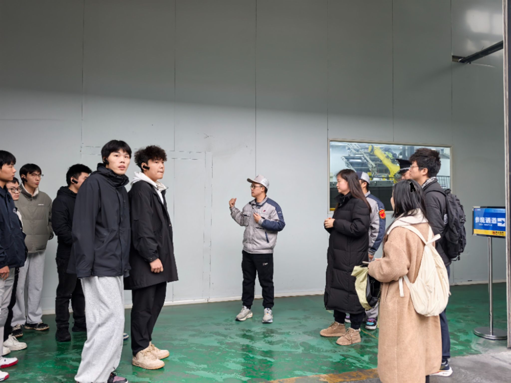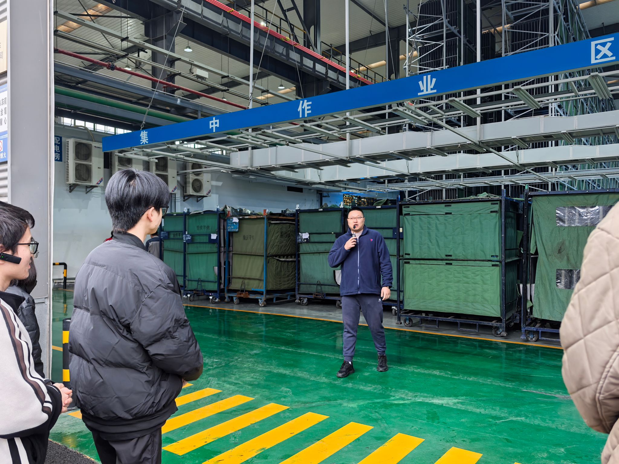 随后,公司技术负责人邓主管带领学生步入1号车间,参观车间的门板、新能源电池箱盖生产线。在参观过程中,邓主管分享道:“自去年8月厂区启动建设以来,我们面临了一个挑战——某项关键设备需巨额投资。但我们的研发团队迎难而上,凭借智慧与创新,以极低的成本成功实现了该设备的功能”。他鼓励学生们面对困难时,应勇于探索,积极寻找解决方案,因为办法总比困难多。在该车间中使用的智能化管理系统、视觉检测系统等智能化技术,为企业生产提供了强大的助力。学生们被企业先进的技术设备和严谨的工作流程所震撼。他们亲眼目睹了智能化生产过程,感受到了企业的创新活力和科技实力。同时,学生们也看到了企业员工们认真负责的工作态度和团队协作的精神,这让他们对未来的职业发展有了更明确的目标和方向。