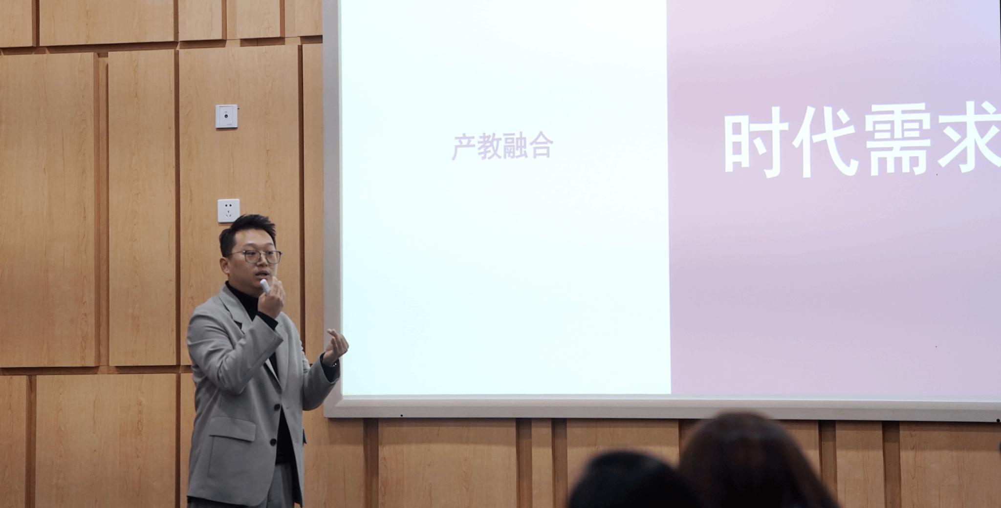 韩鹏伟老师以“担时代责任·育新质人才”为发言起点,对重庆移通学院艺术传媒学院网络与新媒体专业的人才培养、就业择业等规划进行了分享。韩老师在分享中讲到,重庆移通学院以“信息产业商学院”为总体办学定位,在顶层设计上对新媒体的未来发展有着前瞻性与指导性。艺术传媒学院网络与新媒体专业在课程设置中不断实现教学与产业的同频共振,教学积极申报“双师”认证,学生积极参加认知实习,未来还增设专业实习,旨在为学生打造与企业、与行业、与产业的有效贴合,为学生未来顶岗实训、择业创业提供指引。
