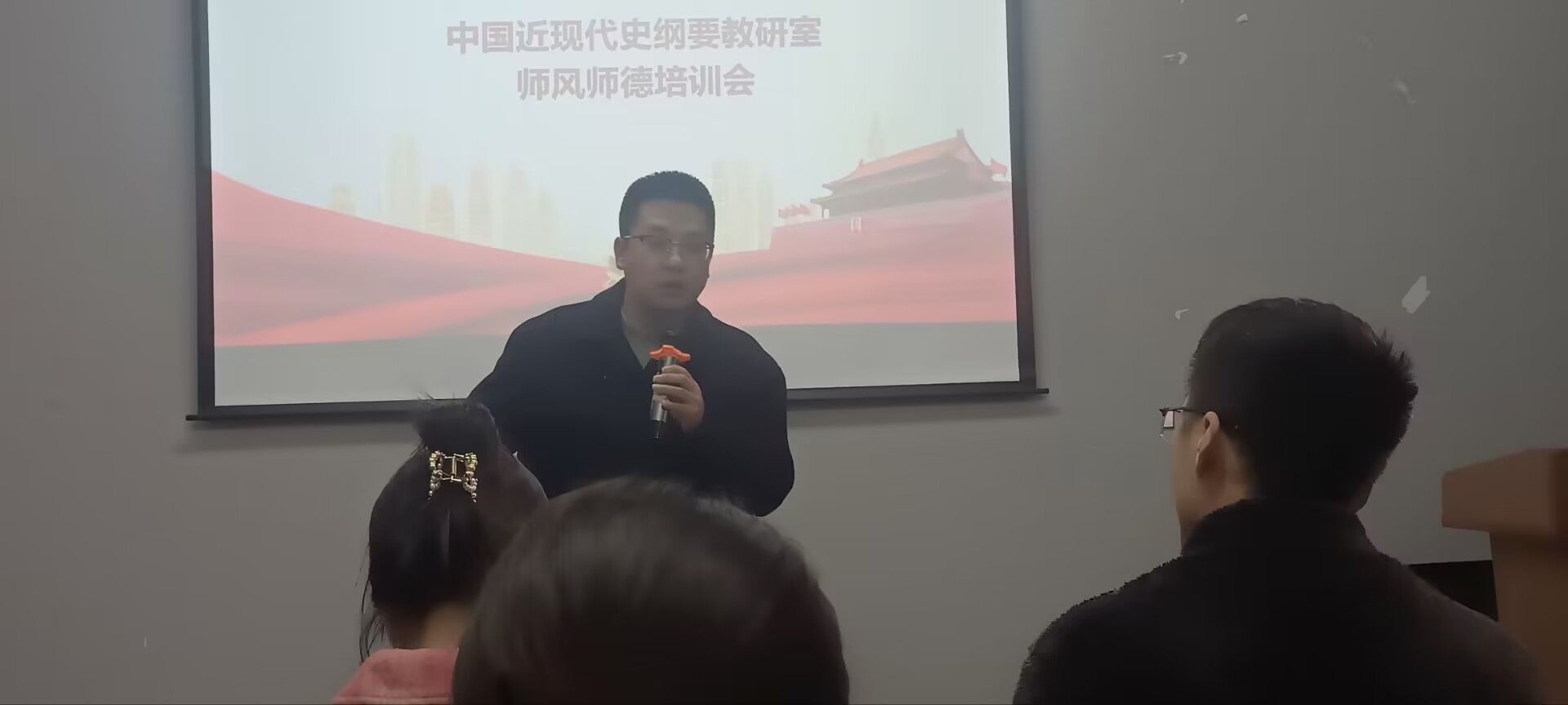 为切实加强师德师风建设,提升老师们崇德敬业的思想意识,规范教育教学行为,引导老师们坚定理想信念,潜心教书育人,树立良好师德形象,12月6日下午5点,中国近现代史纲要教研室在花果书院多功能室召开师风师德培训会,本次会议由教研室主任李阳老师主持,教研室全体老师参加。