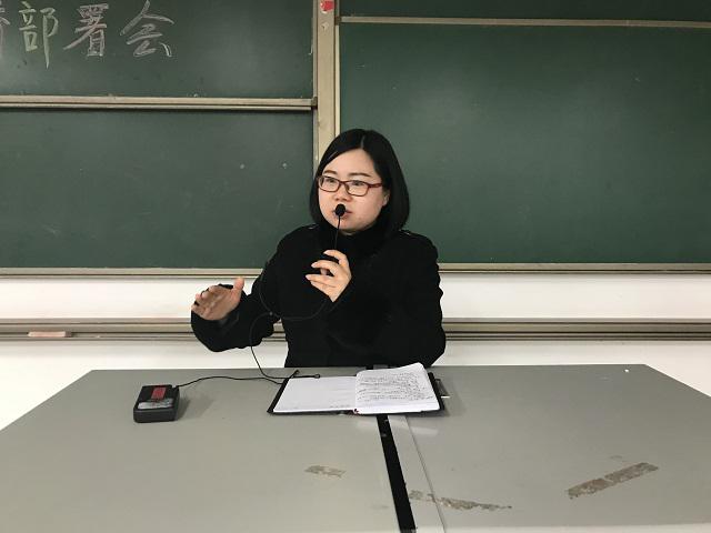 下午14:30,所有人员齐聚5105教室,举行了外语系2017-2018学年下学期完满教育工作部署大会,主席团成员对上学期的工作进行总结,对新学期的各项工作进行部署。负责社团活动的谭秋涛副主席提出不管是主席还是干事都有主人翁意识,不忘初心,坚持到底;分管志愿服务的陈星宇书记提出在新学期志愿服务在保证志愿服务全民化的同时,要向着“新”、“质”、“合”三个方向努力;艺术和竞体负责人罗富冬副主席明确提出我系在这两块工作中的目标:“全民参与,勇争第一”;谷穗副书记对组织建设和宣传调研工作进行总结,她提出,在新学期,组织建设要抓阵地建设,班团基层活力和团总支学生会内部建设是关键;宣传要重实效、重内涵,外媒要打通,调研要以问题为导向,精准发力。