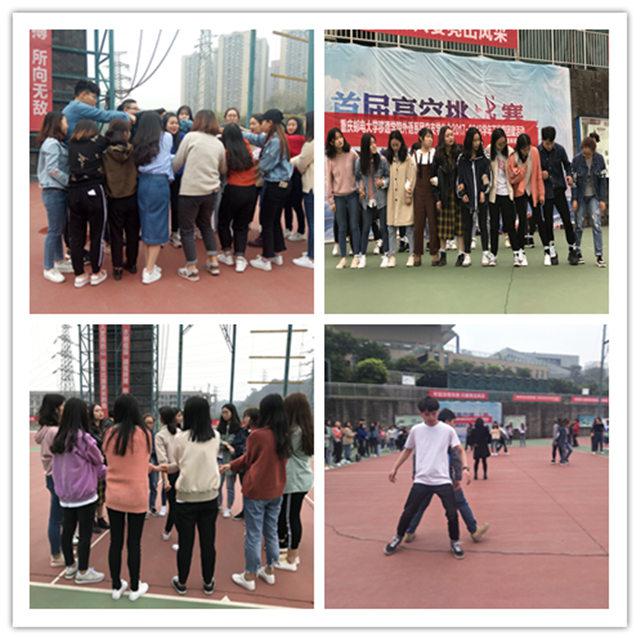 下午15:30,工作部署大会结束。外语系全体干部干事于校门口集合,集体步行至素质拓展中心,开展团队建设活动。所有人员均分为四支队伍,四名主席团成员分别为每队的队长,三位老师为裁判员,全员参与其中,大家庭的氛围其乐融融。团建的首要环节就是团队文化建设,各队队员群策群力,在只有五分钟的准备时间内将队名、口号和队歌确定,凝聚了团队,鼓舞了士气。活动共设置了三个环节,分别是“解手链”、“背靠背运气球”、“十人九足”。在第一轮手牵手解手链时,第四组率先完成,一组紧随其后,三组也不输士气。由于二组同学没有找对方法,一直无法解开,最后在其他三组同学的帮助以及老师和工作人员的鼓励下完成任务,在解开的那一刻,所有人都拥抱在了一起。而后的十人九足更是精彩,每个同学都同心协力,必须高度配合才能完成,老师们也忍不住给各队出主意、找技巧。每一环节结束后,都会让各队代表进行分享,其中取得三轮都是第一名的第四组队员张丽媛分享到:“团队的胜利不光要有一个好的领导者,更要有给力的队员”,还有排名第四的第二组的队员分享说:“有困难很正常,但是只要大家齐心,总会取得成功!”