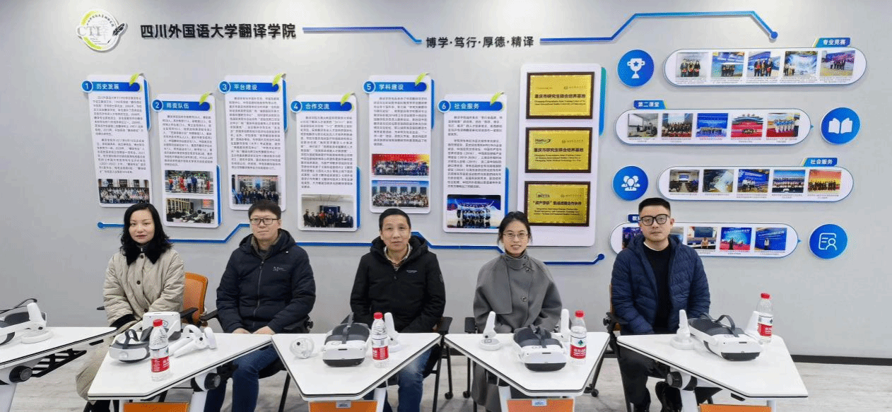 12月6日下午,重庆移通学院外国语学院一行前往四川外国语大学,对VR智慧语言实验室进行参观与调研。本次调研由院长吴世银带队,副院长罗琳、英语专业负责人甘伶俐老师、翻译专业负责人杨加伟老师,专门用途英语教研室曹阳阳老师参加。
