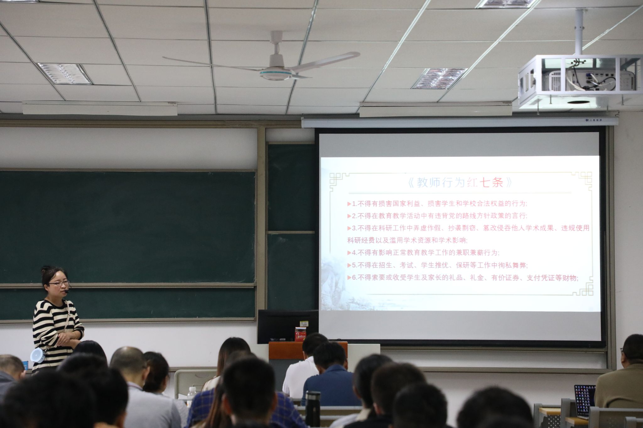 为了进一步加强师德师风建设,提升教师的职业道德水平和教育教学能力,智能工程学院于10月9日下午4点,在9201举办师德师风专题讲座,此次讲座由校级优秀共产党员邢阳阳老师主讲,邢阳阳老师始终坚守共产党员信仰,深入学习党的理论和路线方针政策,不断提高自己的政治素养和觉悟,充分发挥了先锋模范作用,并在教科研工作中取得了显著成绩。本次活动由智能工程学院院长党晓圆主持,学院全体教职工参与本次会议。