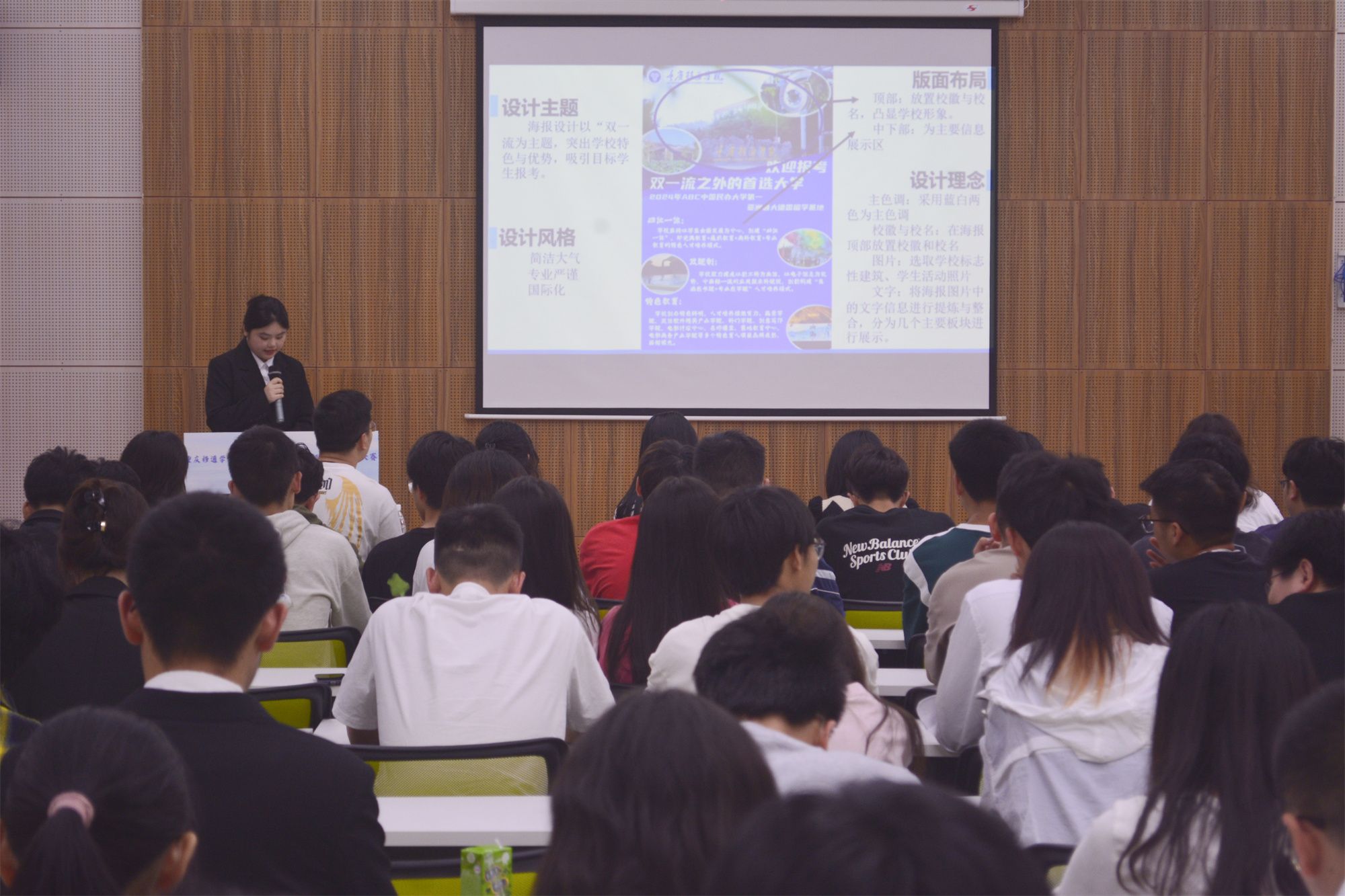 当无数移通学子一遍遍穿过北校区的羊肠小道,路过荷悦旁的荷花池,走过儒雅安静的北山斋,在移通的每一刻都闪耀在他们的生活时光中。为让学生们通过自己的感受和体会来创造出他们心目中的校园,助力宣传学校品牌,同时增强对学校的归属感与认同感。2024年5月10日14点,由重庆移通学院主办、智能工程学院团总支新媒体工作室·美宣部协办的第六届“闪耀移通”招生广告创意设计大赛学院复赛在天渠书院111报告厅举行。