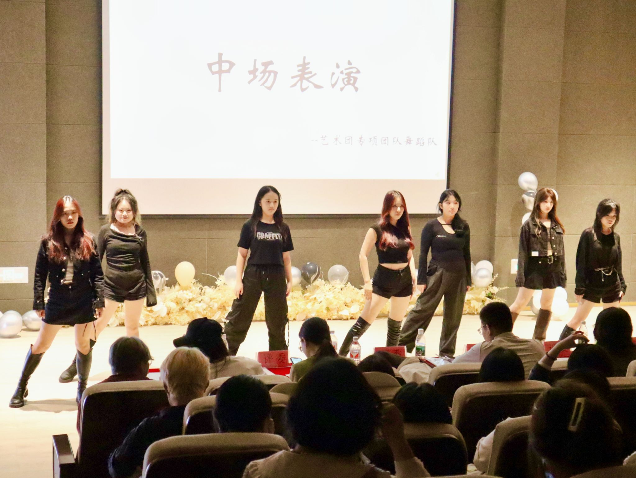 至此,第二轮比赛结束。决赛进入中场表演环节,外国语学院艺术团VFUN专项团队舞蹈队为观众们带来中场舞——《Black Mamba》,将现场热烈气氛推向高潮。
