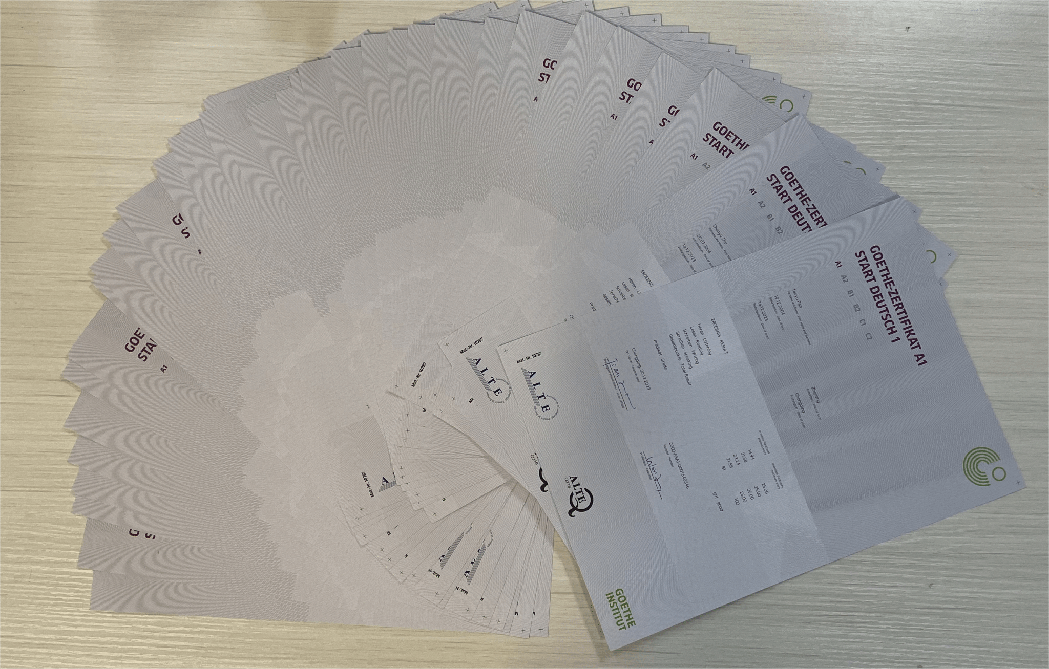 此次考试是2023级学生首次参加欧标德语考试,他们仅仅经过一个学期的德语学习便取得了如此佳绩。这一成绩的取得离不开学生们自身的刻苦努力、教师们的悉心指导以及学院领导的支持。从新学期开始,学院领导便为全学期工作定下了基调,全院上下以终为始,学生们也在德语学习中展现出了极高的热情和求知欲,他们积极参与课堂讨论、自主进行练习、主动与教师沟通交流考试技巧,不断提升自己的语言能力。