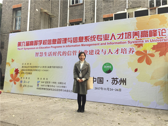 11月25日,由教育部高等学校管理科学与工程专业教学指导委员会、国际信息系统协会中国分会(CNAIS)和清华大学出版社主办,苏州大学和清华大学出版社共同承办的“第六届高等学校信息管理与信息系统专业人才培养高峰论坛”在苏州大学敬贤堂成功召开。此次论坛的主题是智慧生活时代的信管专业建设与人才培养。来自全国各高校老师和部分企业代表的400余人出席了论坛。我校管理工程系信息管理与信息系统专业教师耿元芳参加了此次论坛。