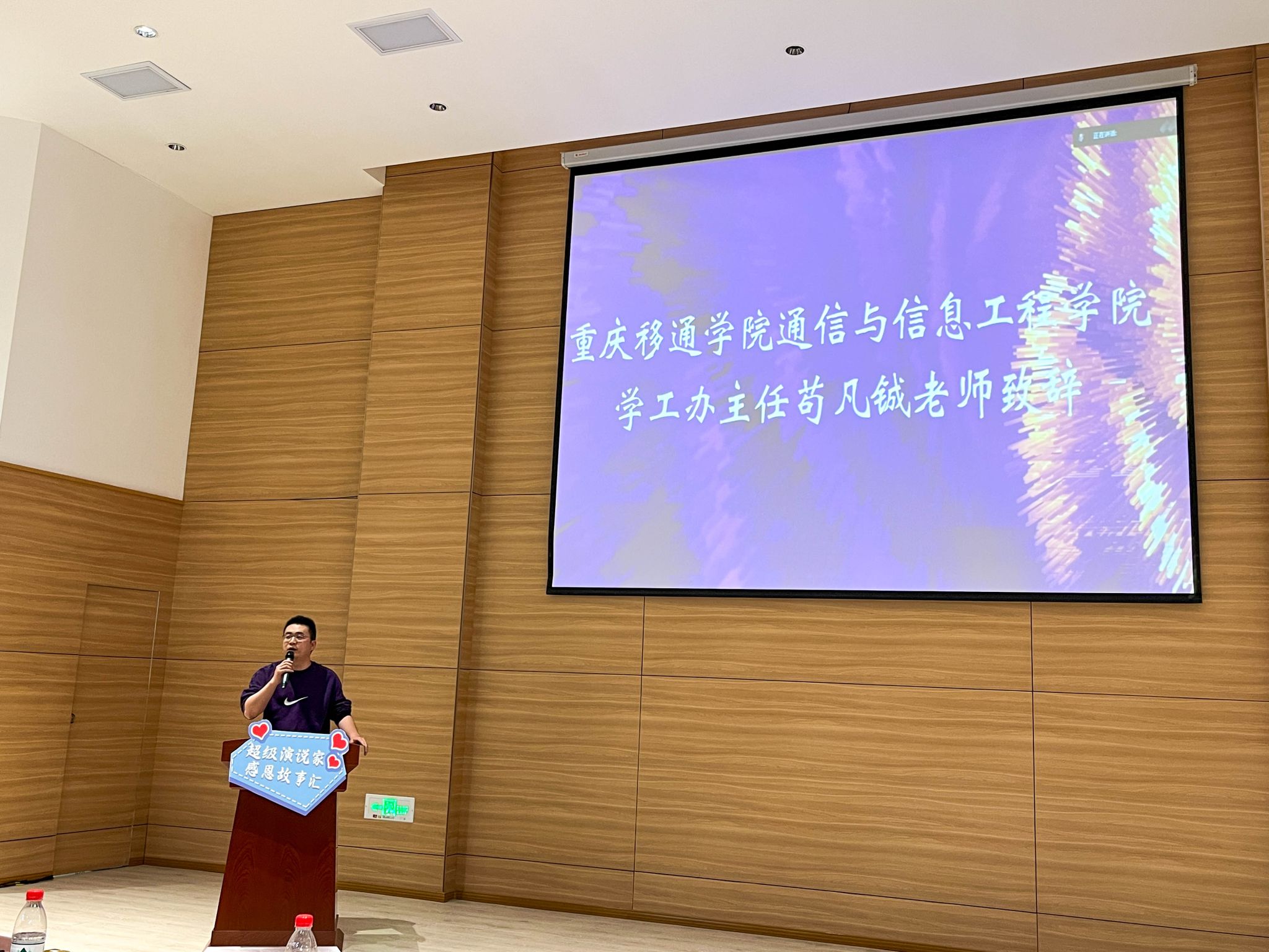 “为了温暖别人,把自己点燃;为了照亮别人,把自己燃烧;为了帮助别人,把自己奉献。”晋中信息学院评委范智超老师和重庆移通学院评委徐明飞老师针对每一位参赛选手的表现进行了总结,从主题、内容、语言艺术、声音形象等角度指出了每位参赛选手的优势及不足。晋中信息学院食品与环境学院郭杰副院长与重庆移通学院通信与信息工程学院学工办主任苟凡铖老师对本次大赛进行致辞,针对本次大赛主题提出了指导性意见,同时殷切希望大家能常怀感恩之心、助人之心,把志愿之情深埋于心。