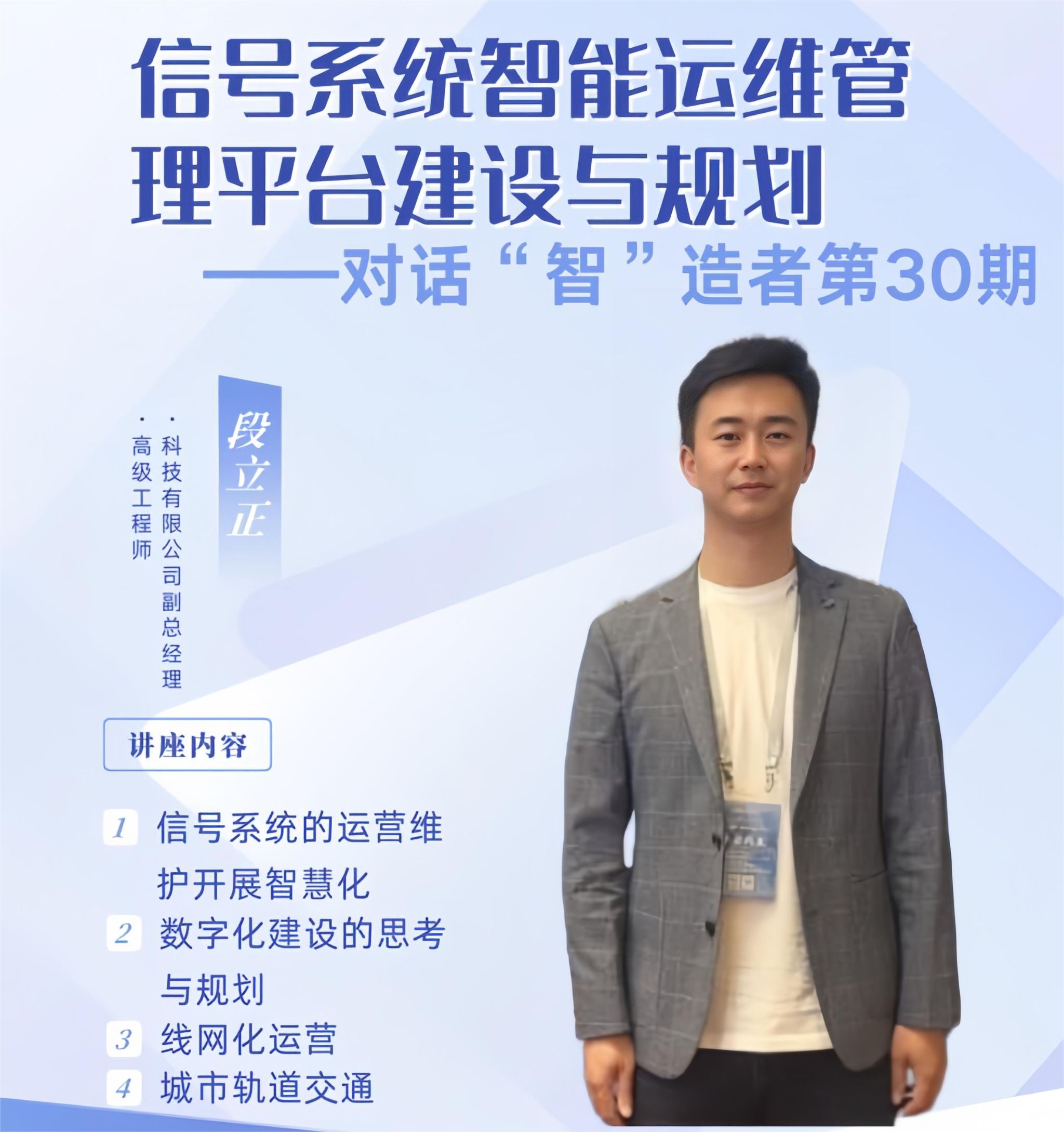 随着城市轨道交通的发展,给轨道交通管理和运营提出新的挑战。为了应对新形势与挑战,各个城市纷纷上线了轨道信号智能运维系统作为轨道交通的“智慧大脑”。为此,智能工程学院于4月17日在天空书院长空报告厅举行对话“智”造者第30期讲座,本期讲座主题是“信号系统智能运维管理平台建设与规划”,主讲嘉宾四川众合智控科技有限公司副总经理,高级工程师段立正老师,学院师生90余人参加了讲座。