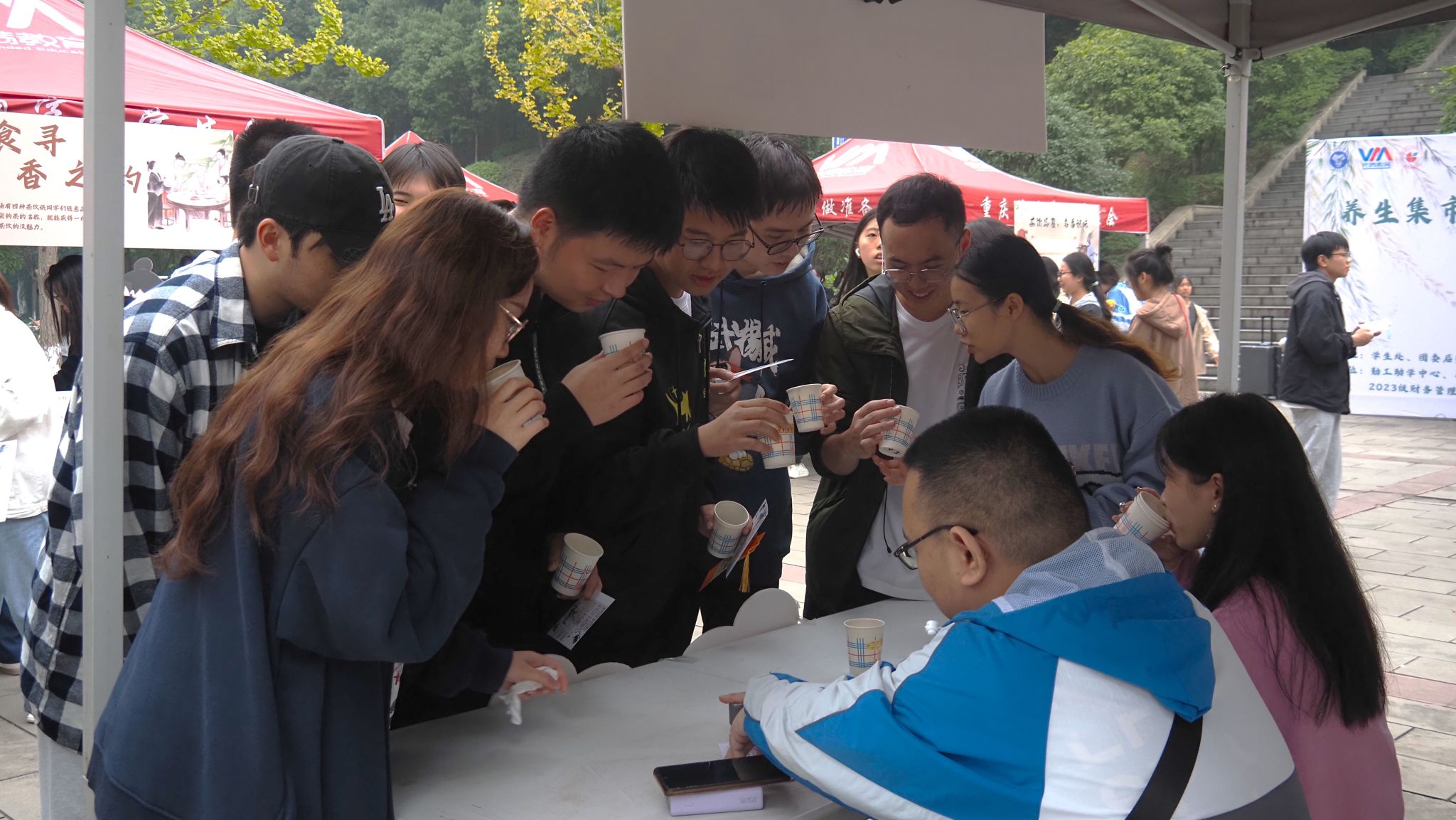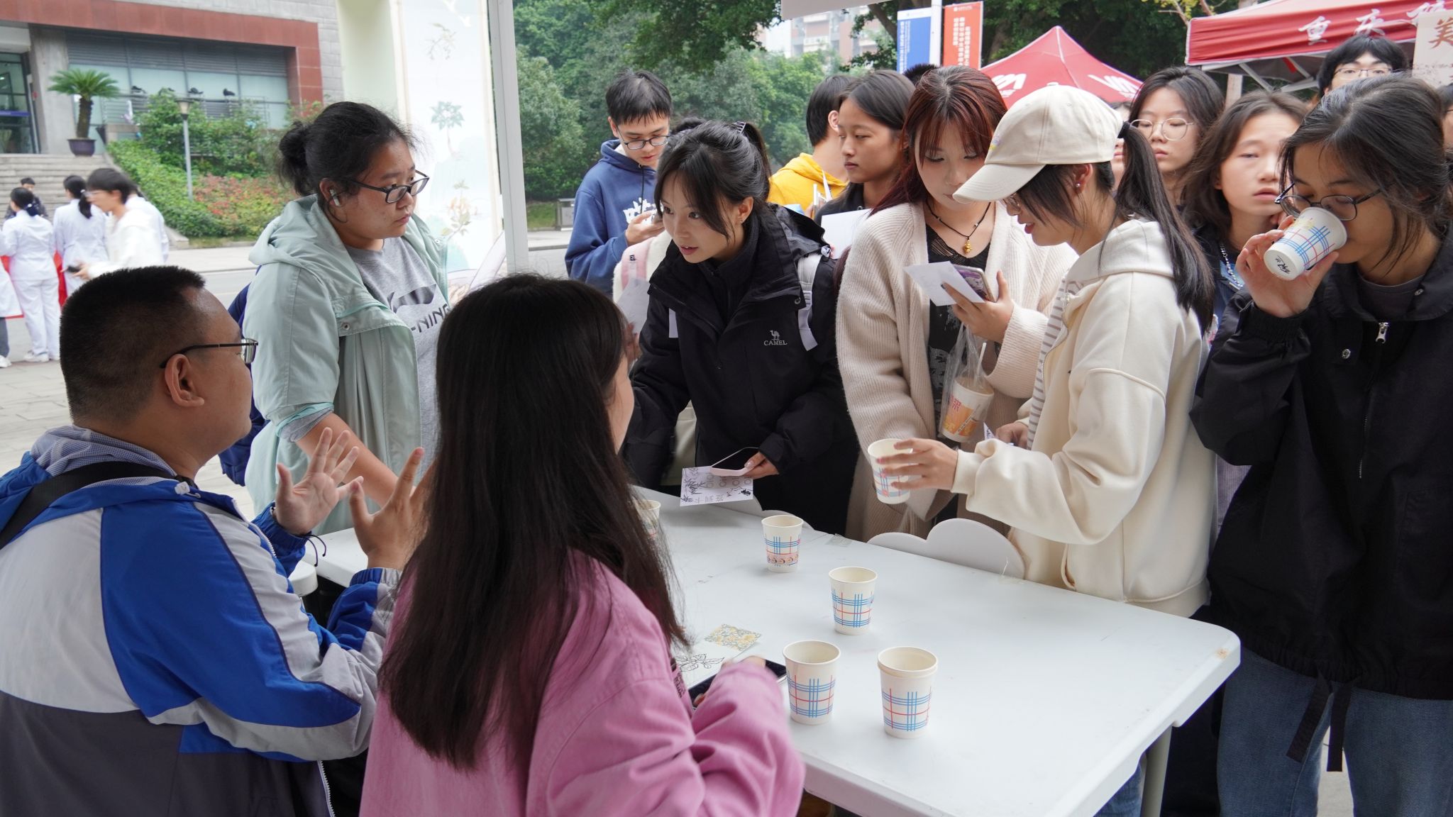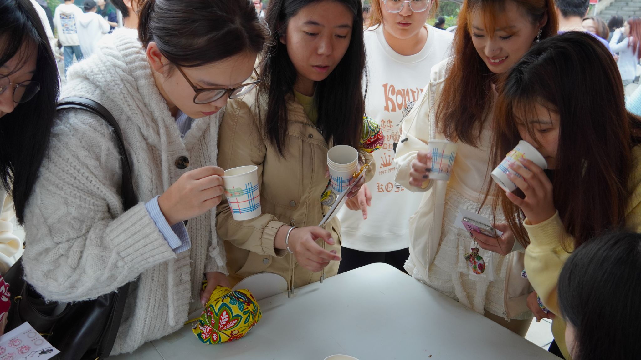 “美食寻效,羹香之约。”在药膳养生区,同学们是“中药品鉴家”。红枣银耳羹和山药薏米粥的香气扑鼻而来,玫瑰花茶、酸梅汤、红豆薏米茶等饮品轮番上阵,让人垂涎欲滴。同学们在品尝药材美食的同时,还积极回答关于食材功效的问题,不仅满足了味蕾的享受,还增长了养生知识,感受传统茶饮的魅力。