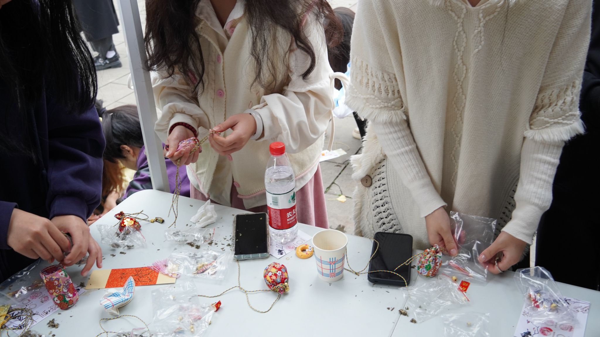 趣味养生区调动起同学们的动手能力。在这里同学们是“调香师”,是“灵魂画手”,是“养生手艺人”。活动乐趣在于“身临其境”。他们亲手挑选中药材,搭配出属于自己的独特香囊,药香四溢。他们拿起画笔,在精美的书签上描绘出中药材的简笔画,将中药文化与艺术之美完美融合。他们制作出一把把精致的养生锤,享受手作之趣。