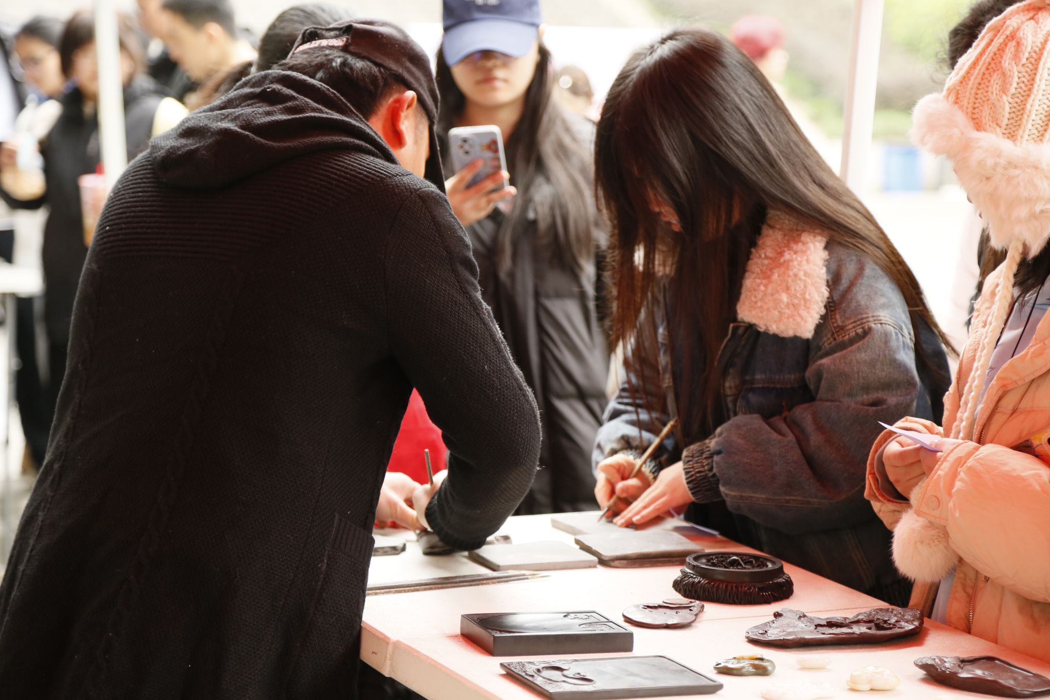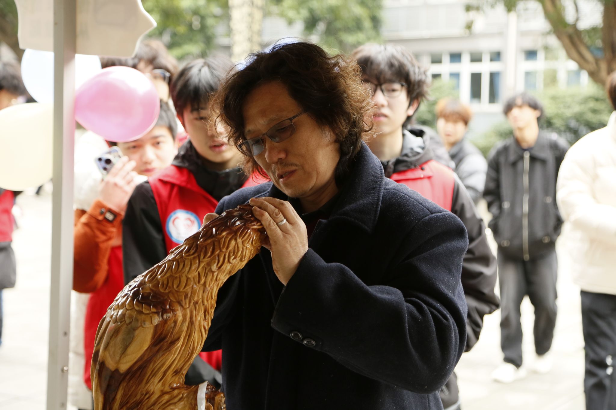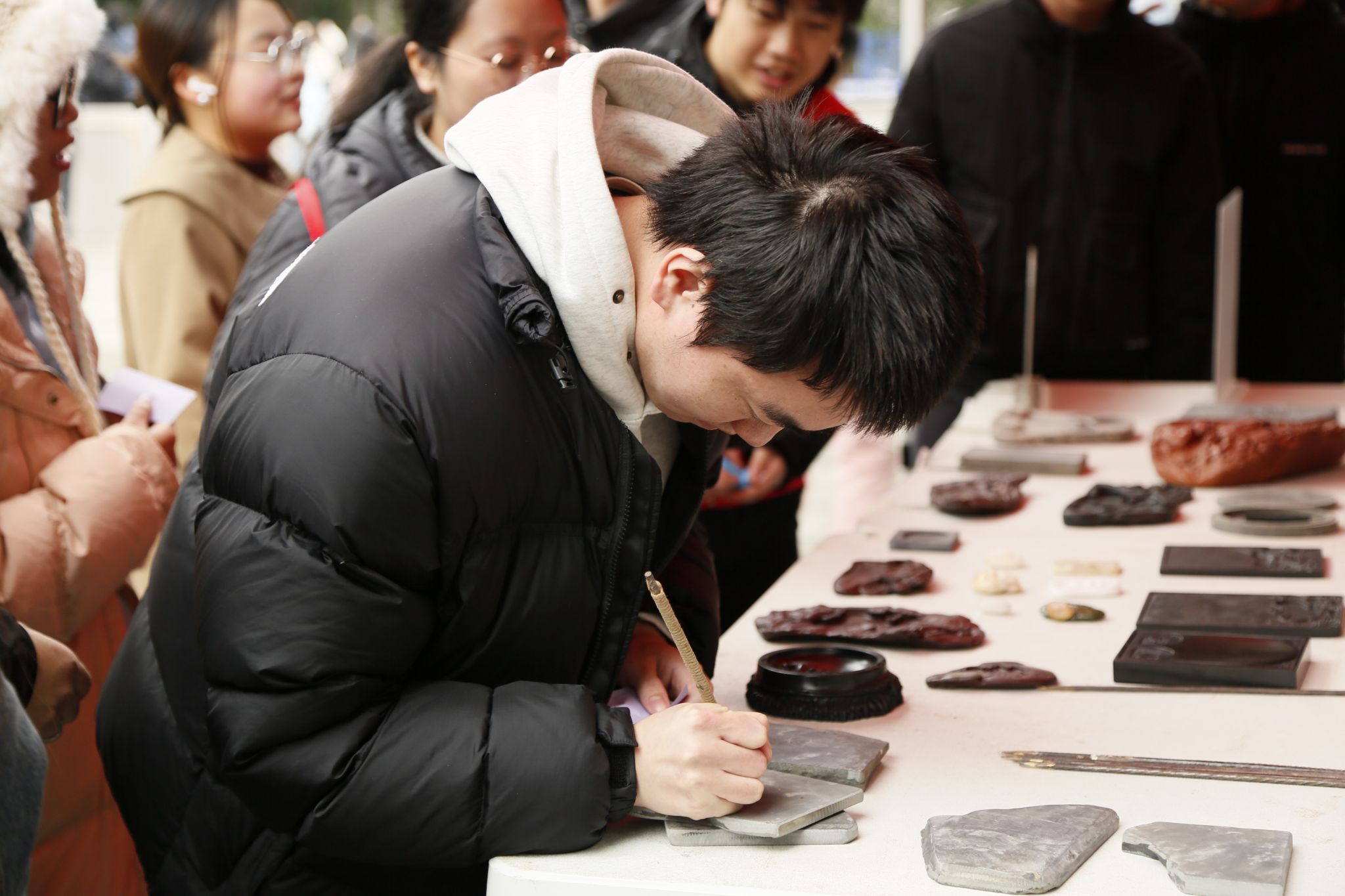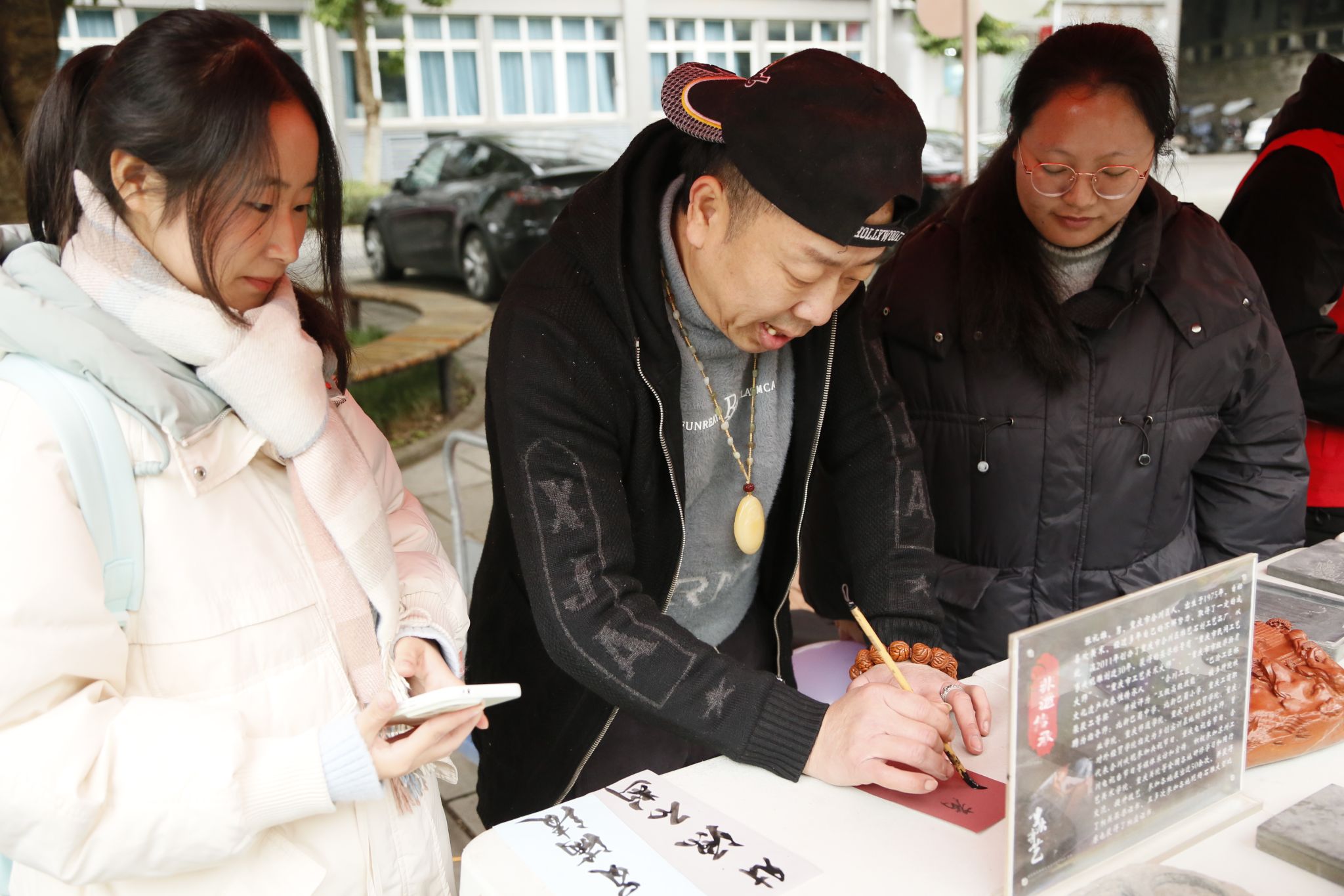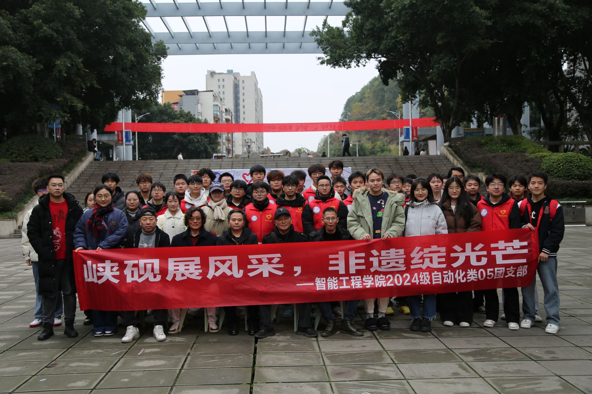 为弘扬中华优秀传统文化,展示非物质文化遗产深远底蕴,2024年12月13日,张礼雄(合川峡砚传承人)、王卫国(合川峡砚传承人)、余辉全(传统木雕工艺美术大师)、夏国全(‘龙舟竞渡’传承人)四位老师,及非遗技艺学徒,同我校师生在黄桷树广场开展以“科技之光,文化之韵”为主题的文学作品创作征集文化创作类完超系列活动。活动由智能工程学院青年志愿者协会主办,2024级自动化类4-5班、校3D打印社、“非遗传承智能+”志愿服务专项支队协办。