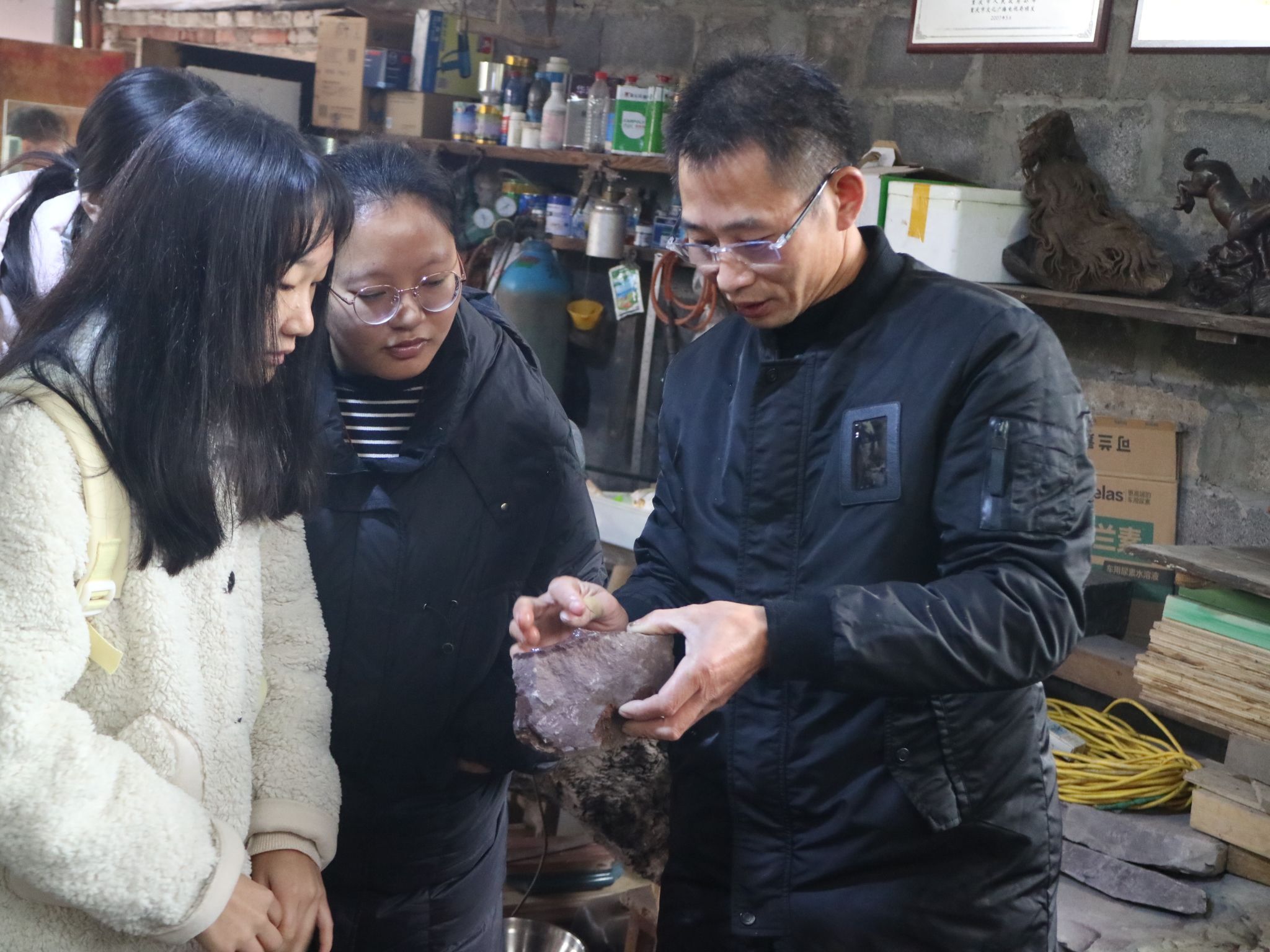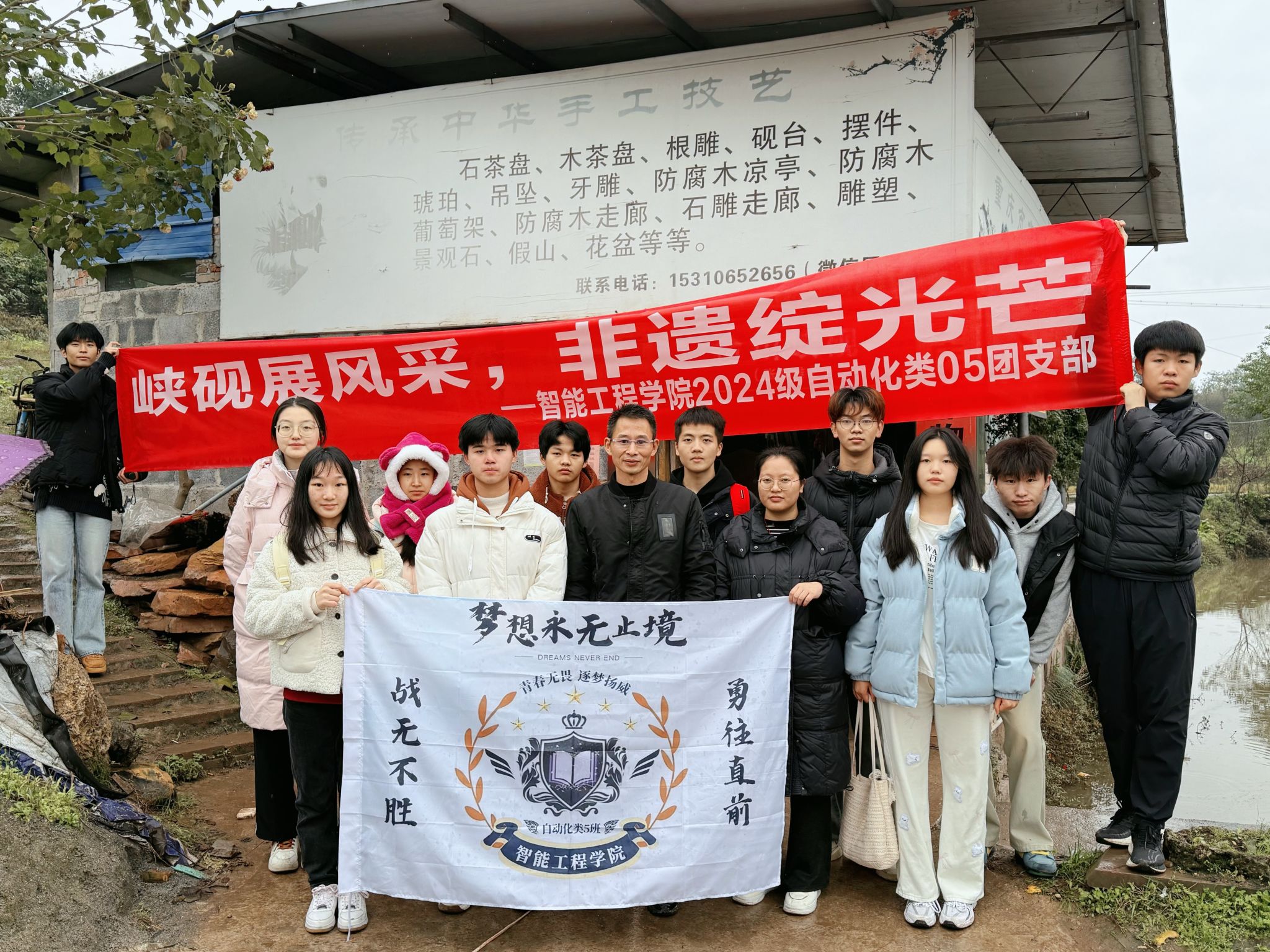 12月7日,智能工程学院青年志愿者协会、2024级自动化类5班团支部学生代表、“非遗传承智能+”志愿服务专项支队、“探寻非遗文化,传承峡砚艺术”考察实践团代表一同前往合川峡砚传承人张礼雄老师的工作室,开展回访面谈工作。此次回访,是2024年大学生暑期“三下乡”社会实践活动的延续,是2024级自动化类5班同学们与合川峡砚传承人的相遇,亦是合川峡砚传承人对大学文化建设工作的重视与拥护。