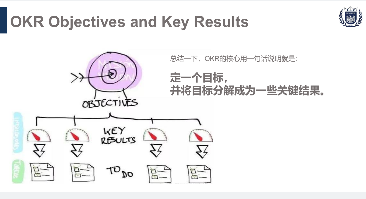10月12日,学院教学副院长刘贵容在全体专任教师大会上,再次对集团OKR培训文件向全院教师进行了转训。OKR主要用于目标管理,从公司层面往团队层面再往个人层面逐级分解目标,使全公司所有人都朝着共同的目标和方向努力。OKR重点是目标管理而非考核。它能让团队关注目标、关注真正重要的事情,让团队的工作与沟通变得更加高效和有意义。