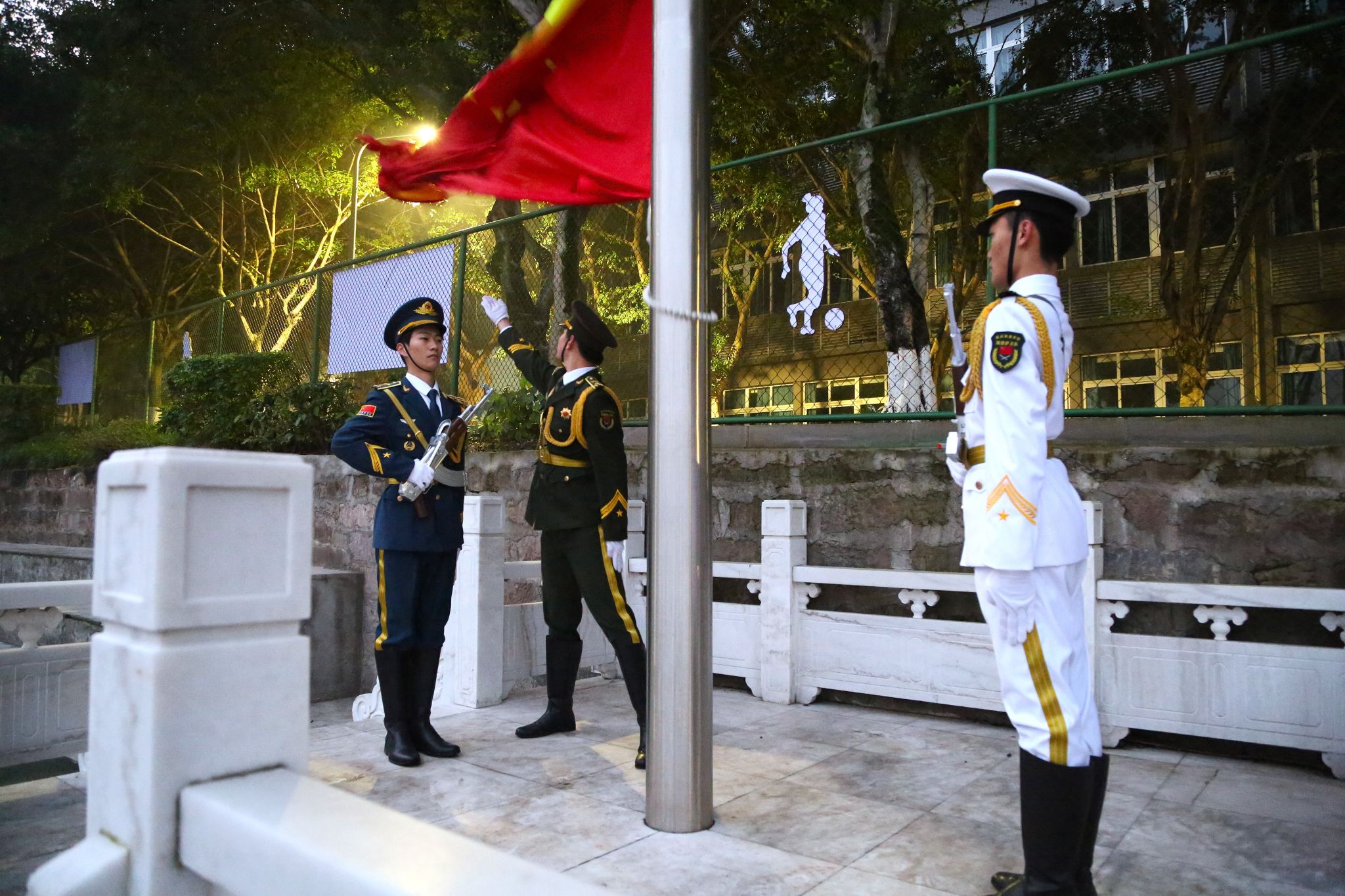 7:20分,升旗仪式庄严启幕。激昂雄壮的国歌声如汹涌澎湃的滚滚巨浪,刹那间冲破清晨的宁静。全体师生面向升旗台,庄重而立,致以最虔诚的注目礼。国旗迎着微风,不疾不徐地攀升,仿佛承载着无数先辈的期冀与今人的梦想,最终傲然飘扬于旗杆顶端,猎猎作响。国歌声声,红旗飘飘,激荡着莘莘学子心底汹涌澎湃的爱国情怀,唤醒灵魂深处那份对国家最炽热、最纯粹的眷恋,这眷恋穿越时空,代代相传。