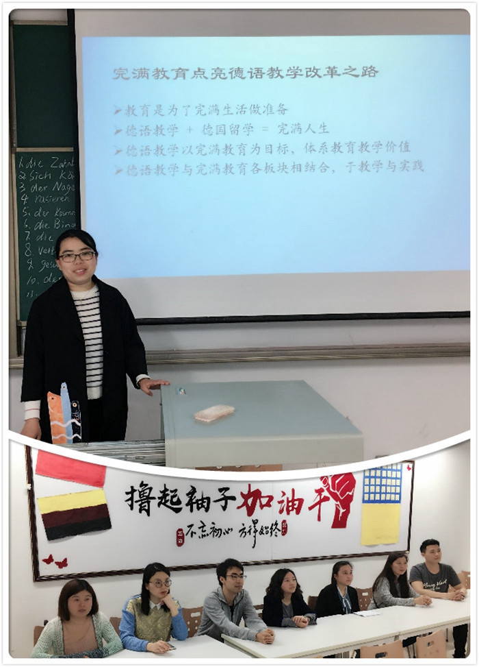 4月25日19点,中德学院德语教研室二次组织全体德语教师参加了以“完满教育”为主题的教学交流会议,会议由教研室主任侯宇晶老师组织进行。