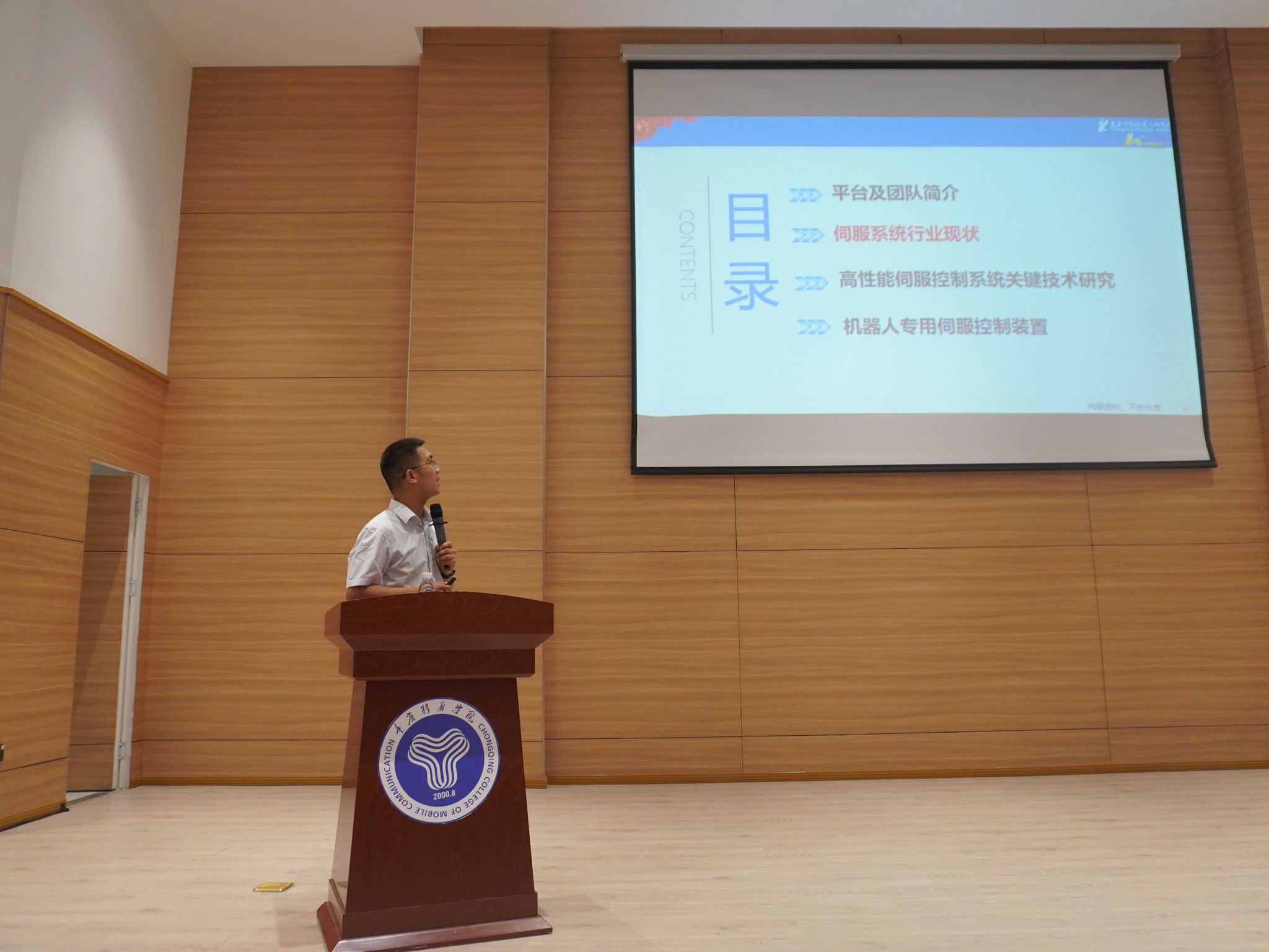 夏亮老师为大家介绍了华数机器人产业链布局以及重庆智能机器人研究院由院士领衔的学术学科团队,并从不同方面说明了伺服系统行业现状,仔细讲解了高性能伺服控制系统关键技术的研究,然后介绍了机器人专用伺服控制装置及后续研究方向。在讲座的交流环节,同学们纷纷就自己感兴趣的问题向夏亮老师提问。夏老师耐心地为同学们答疑解惑,不仅解答了大家的疑问,还鼓励同学们积极投身机器人技术的应用研究与创新。