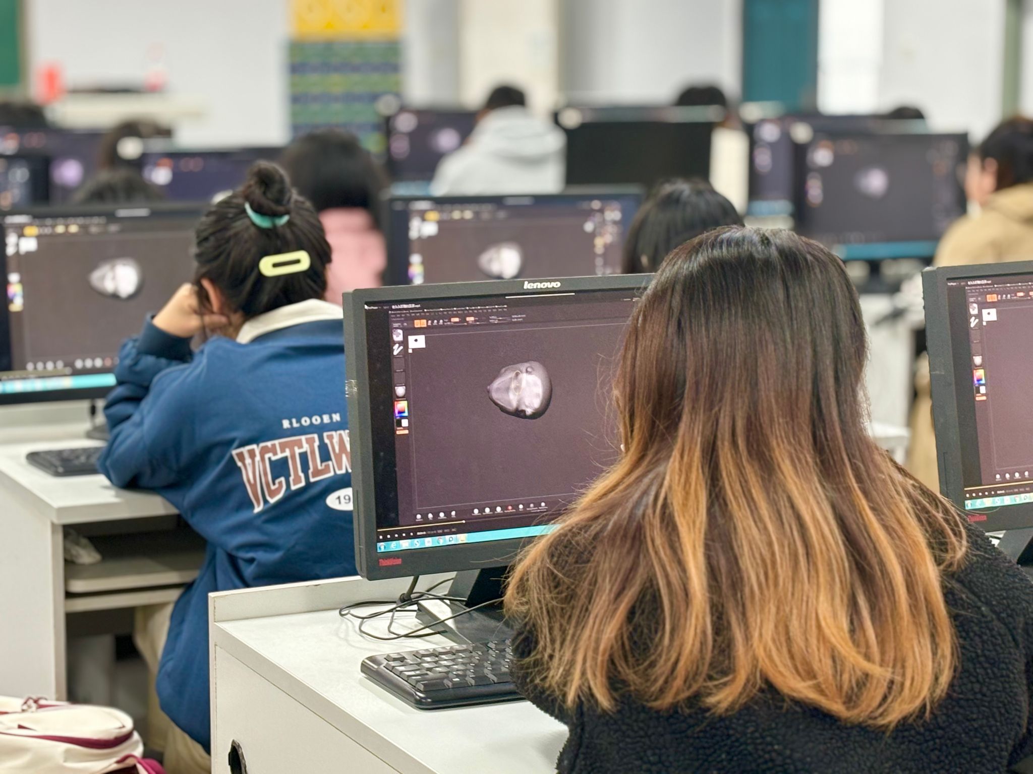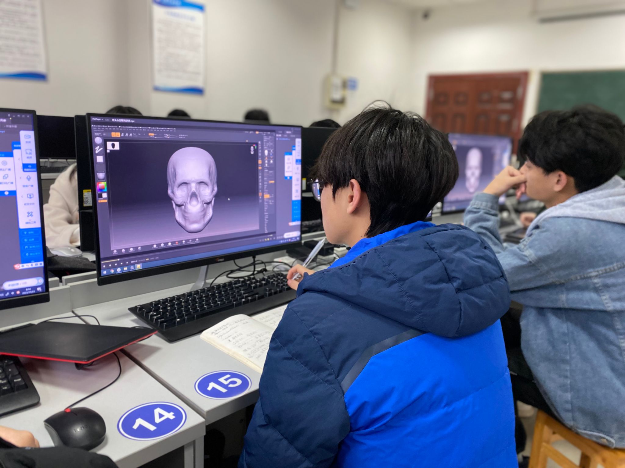 毛泽念老师曾参与指导《熊出没》动画电影项目,现任职于重庆逐影科技,作为游戏角色制作领域的资深专家,以其独特的视角和深厚的经验为同学们揭示了数字雕刻的奥秘,由浅入深地带领同学们初识ZBrush软件,并别出心裁地使用了雕刻骷髅头的案例和实际操作演示,生动地展示了数字雕刻的艺术性和实用性,使同学们深入了解数字媒体艺术领域的前沿技术。