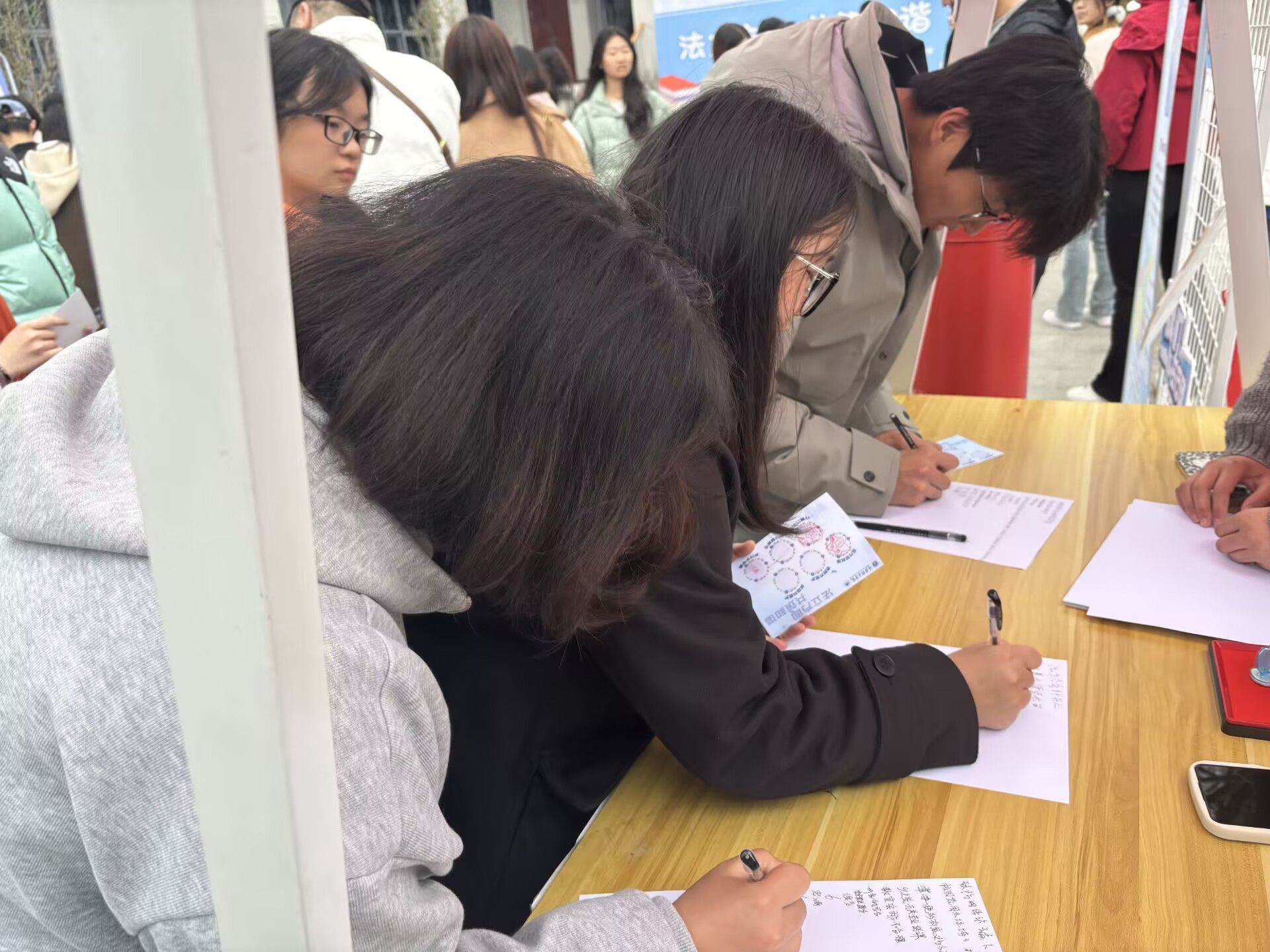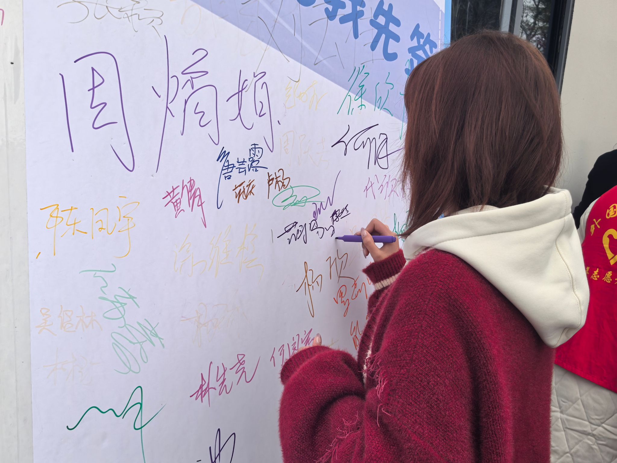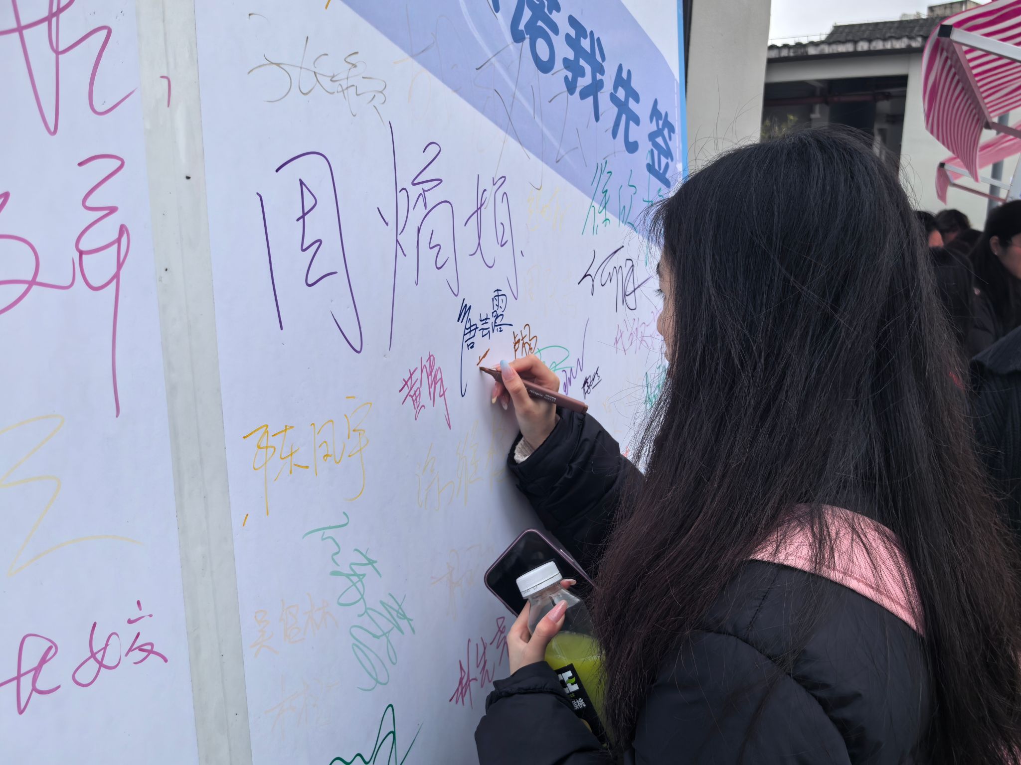 学生代表宣读《反诈承诺宣言》时,声音坚定而有力,每一个字都饱含着对反诈行动的决心。随后,“全民反诈签名墙”活动正式开启,异科导师们与同学们纷纷围上前去,拿起笔,在签名墙上郑重地签下自己的名字,并盖上象征着承诺的印章。这一刻,签名墙不再只是一面简单的墙,而是成为了全体参与者守护校园、抵御诈骗的决心见证。