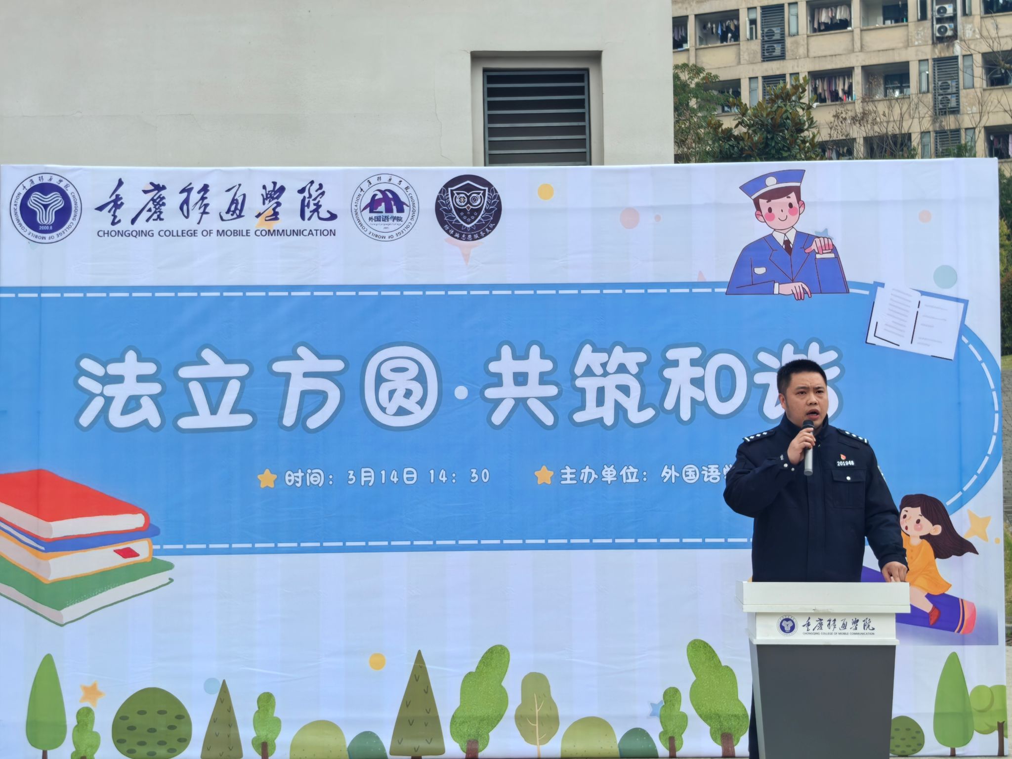 外国语学院学工副院长马喆老师登台发言,他的话语掷地有声,着重强调反诈工作在校园安全体系中的关键地位。马喆老师的发言,不仅是对学院过往反诈工作的总结,更是对未来的展望,激励着在场的每一个人积极投身到反诈行动中来。