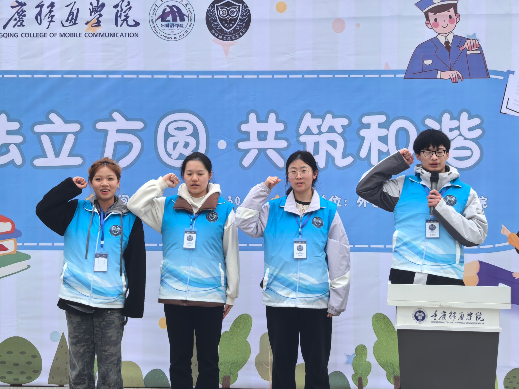活动现场气氛热烈而庄重,外国语学院同学们满怀热忱齐聚于此。尤为引人注目的是,异科导师们早早到达现场,以亲切的笑容和专业的姿态,成为同学们坚实的依靠。一同出席的还有重庆市合川区公安局反诈骗中心吴爽铭警官,重庆农村商业银行合川分行营业部负责人朱丽静、理财经理杨怡,他们的到来为这场反诈行动注入了更为强大的专业力量。