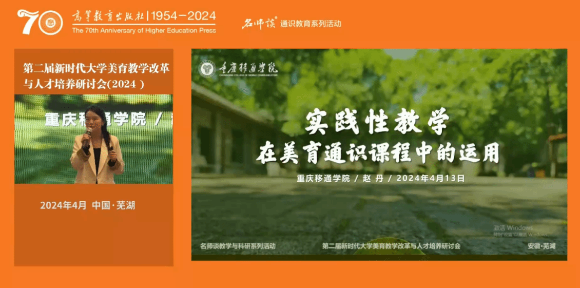 2024年4月12-14日,由中华美学学会指导,安徽师范大学、高等教育出版社共同举办的“名师谈教学与科研系列活动——第二届新时代大学美育教学改革与人才培养研讨会(2024)”在安徽芜湖顺利举办。本次研讨会的主题为“大学美育的新起点与新征程”。来自南京大学、深圳大学、山东大学、复旦大学、上海交通大学、安徽师范大学等高校的近两百名专家学者、教师参与了会议。我校远景学院赵丹老师参加本次会议并做案例分享。