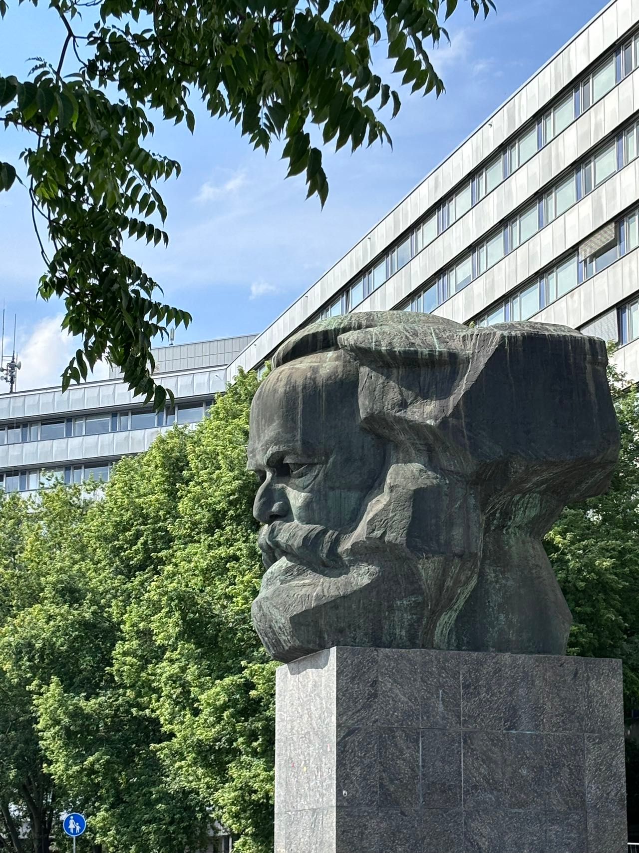课堂之外,还有宜人的温度和靓丽的城市风景线,傍晚的city walk无不彰显着学生们的年轻活力,约上三五好友,漫步在干净整洁的街道上,看着太阳西斜,路边小草随风而舞,披萨店里传出的阵阵香味,和路边的爷爷用德语打个招呼,或是租一个自行车,随心的骑到任何地方去,感受“德式浪漫”。值得一提的是,开姆尼茨的市中心,有一尊卡尔·马克思的雕像,而开姆尼茨曾经有段时间被称为“卡尔·马克思城市”,这个名字来源于开姆尼茨的工业行为非常契合马克思主义思想,以纺织和汽车工业而名,在之后的1990年恢复开姆尼茨的名字,成为德国东部的城市,而明天游学团将去往德国的首都柏林,感受这座世界文明城市的魅力。