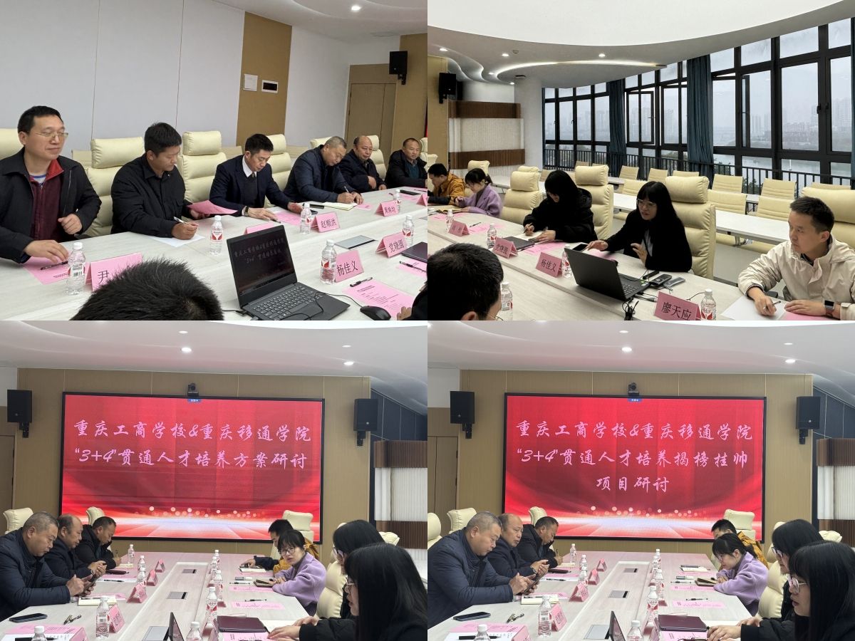 讨论环节,双方围绕课程设置、考试安排、技能培训、实施方案等,就人才培养方案、转段考核及揭榜挂帅项目建设深入交流,达成 “3+4” 七年贯通培养模式共识。黄焕均书记指出,将依据重庆移通学院智能工程学院特色专业与 “3+4” 培养计划,定制重庆工商学校 “3+4” 贯通班学生的培养路径,助力学生构建完整知识体系,提升专业素养。党晓圆院长表示,学院将结合职高学生动手能力强等特点,及时优化人才培养方案,强化文化素质与综合能力培养,全面提升学生综合素质。