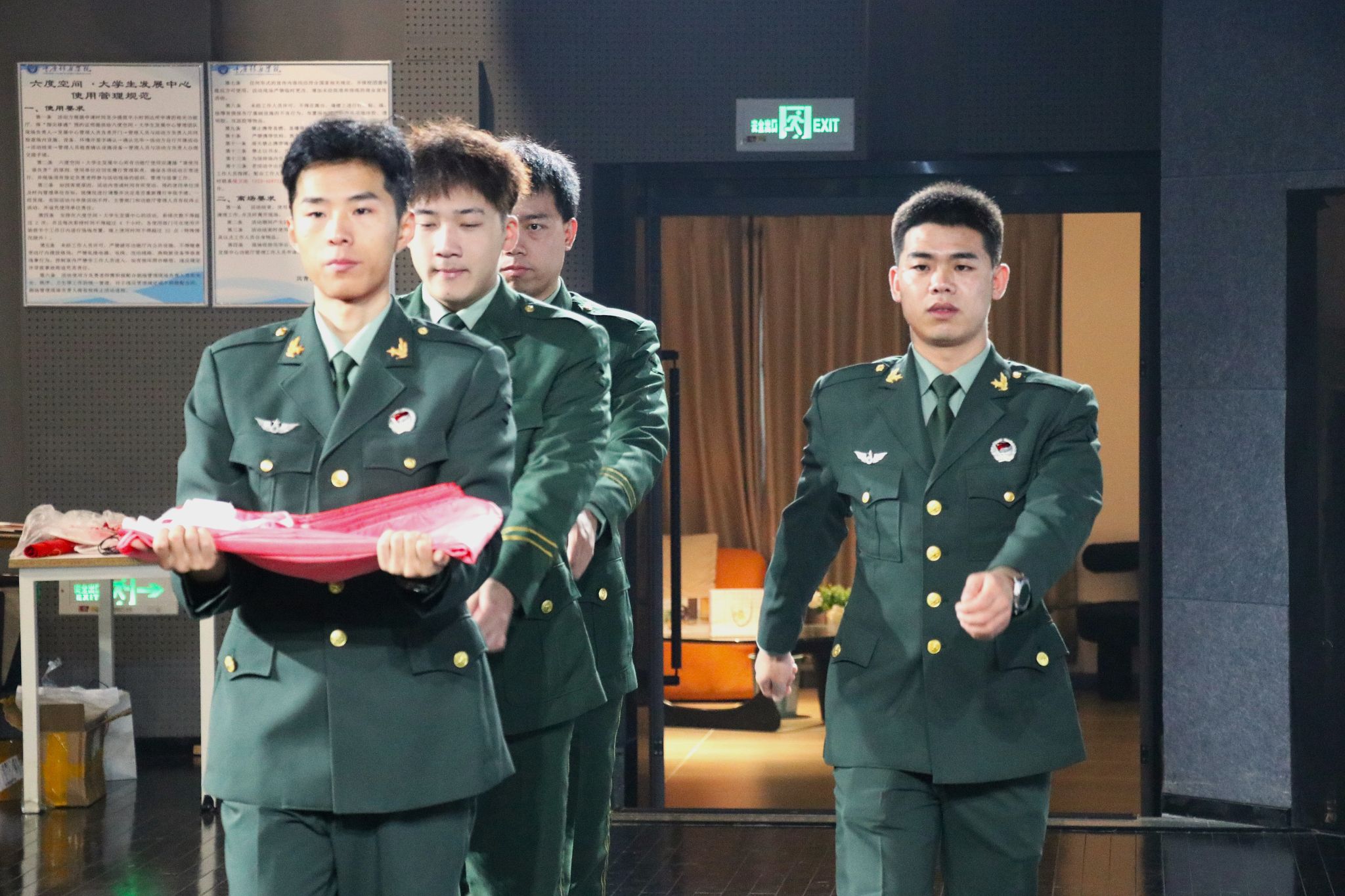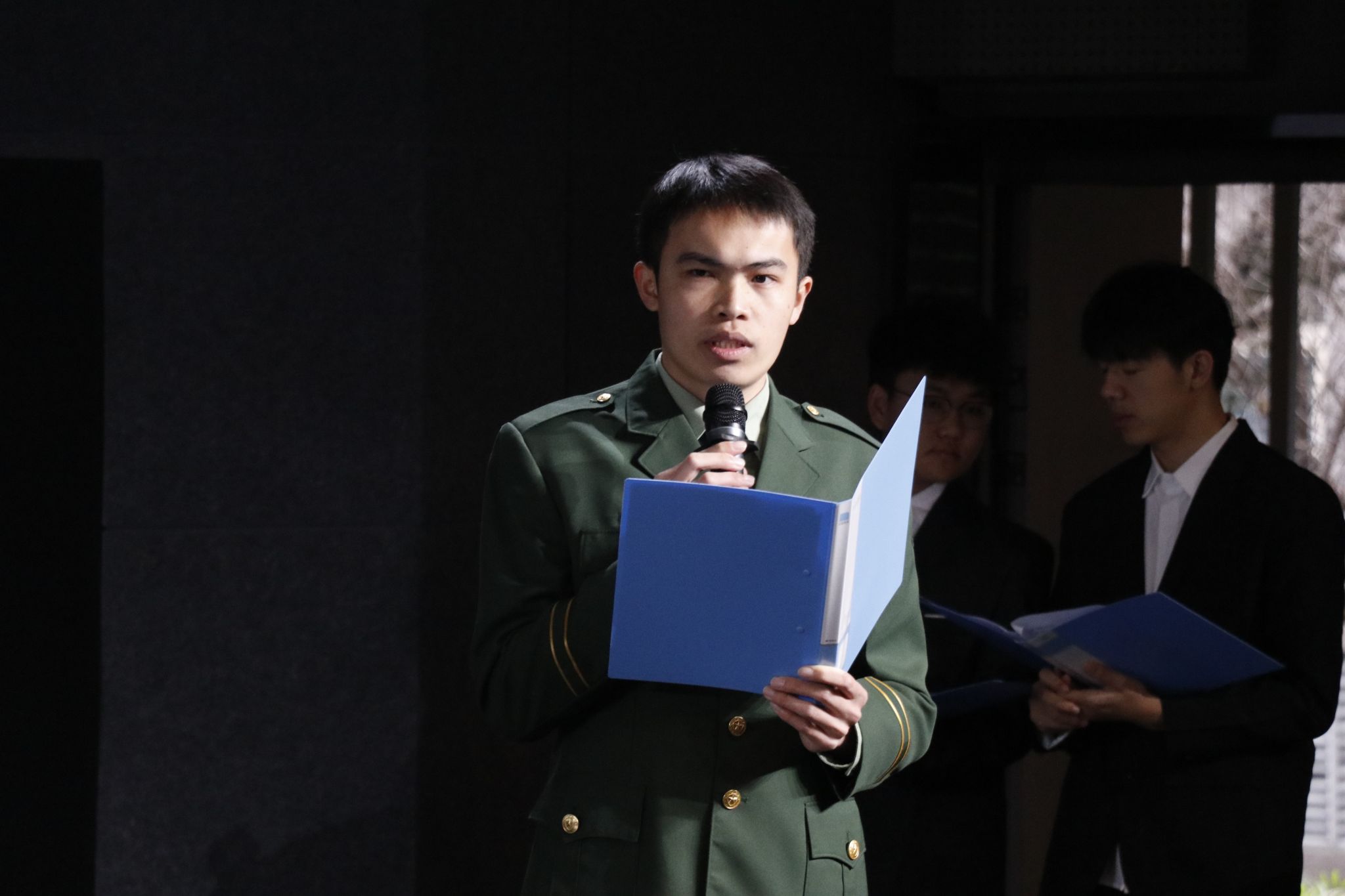 活动伊始,现场气氛热烈而庄重,同学们满怀期待,目光紧紧聚焦在舞台之上。宣讲团旗在众人瞩目中缓缓展开,那一抹鲜艳的红色仿佛点燃了每个人心中的爱国之火。院宣讲团骨干玉洪荣同学作为本次宣讲人出场,代表院宣讲团向所有为国防教育事业倾注心血、挥洒汗水的宣讲团成员及全体退役大学生致以最深的敬意和由衷的感谢。正是因为大家无私的奉献、坚定的信念以及模范的引领作用,国防教育的精神之光才能在智能工程学院内熠熠生辉,广泛传播,深入人心,激励着每一位学子将爱国情怀深植于心。