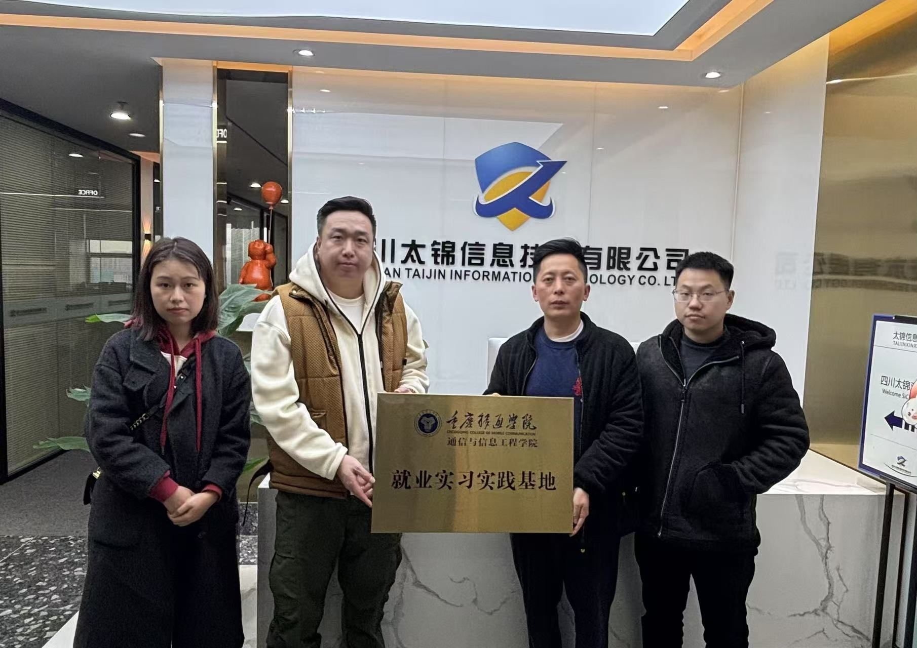 3月16日,重庆移通学院.通信与信息工程学院与四川太锦信息技术有限公司共建“校外实习实践基地”挂牌。为了落实重庆移通学院合格评估及内涵建设相关文件要求,推进通信与信息工程学院产教融合工作做实做深,达到通信与信息工程学院相关专业建设“实践实验保障”特性指标,通信与信息工程学院曾国庆、王朝卿、高鹏、熊莉娅等老师前往四川太锦信息技术有限公司参观走访,并为企业挂牌“重庆移通学院校外实习实践基地”。