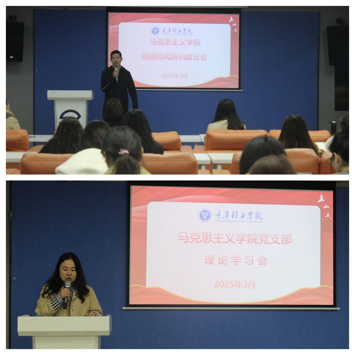 会上,思想道德与法治教研室主任杨勇结合全国教育大会精神和其要求,对大家进行了一场师德师风培训;“概论”课教研室主任毕毓璟按照《全国党员教育培训工作规(2024-2028年)》的要求,结合2025年重庆市教育工作会议精神和《重庆加快建设教育强市推进教育现代化规划(2024—2035年)》文件精神,对大家开展了一场理论学习。