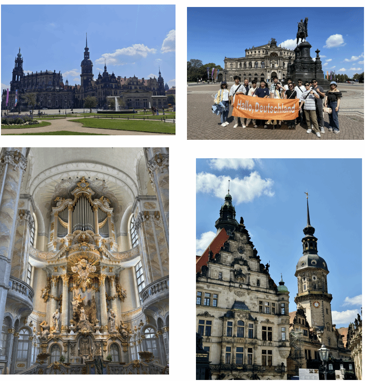 德累斯顿,这座“易北河畔的佛罗伦萨”,F+U团师生沉浸在其深厚的历史文化底蕴中。茨温格宫以其巴洛克建筑的精致与艺术收藏的丰富,引领大家踏入历史的长廊。随后,森柏歌剧院的宏伟身姿映入眼帘,作为音乐与文化的璀璨明珠,它见证了无数艺术盛宴。漫步至易北河畔,波光粼粼中倒映着城市的古韵今风。跨河而望,德累斯顿王宫巍然矗立,不仅是建筑艺术的巅峰,更是萨克森历史的活化石。