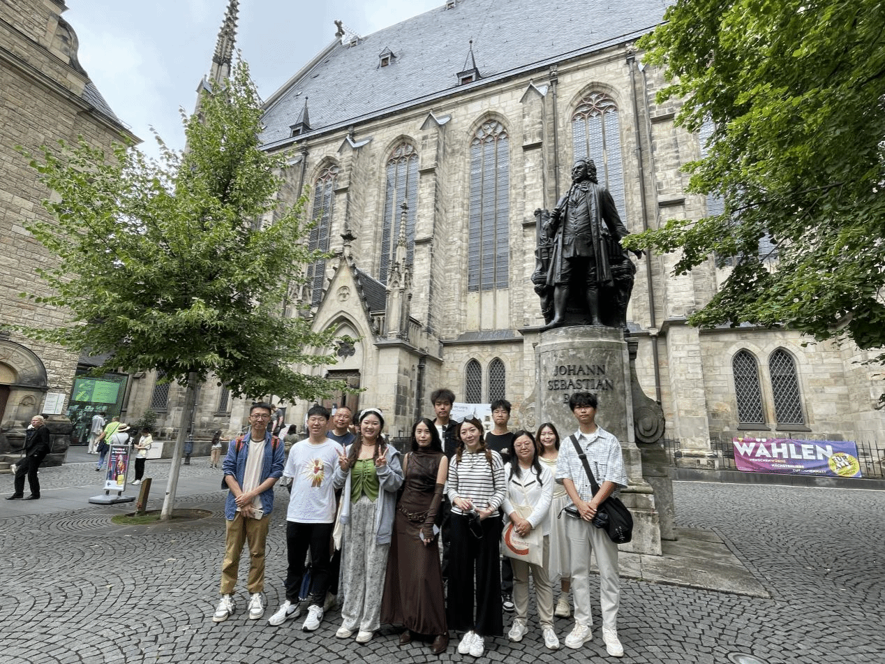 莱比锡,一座被称为“小巴黎”的城市,是音乐之都,文艺之都,是书城,它肃穆庄严又浪漫自由。这座浪漫的城市,倾注巴赫半生的时光,是文艺与现代的结合体。来到这座与巴赫息息相关的城市,一定不能错过的就是前往托马斯教堂进行参观,肃穆的钟声、流光的彩色玻璃窗,古老的管风琴、空灵的歌咏调为这场旅程蒙上一层神圣的面纱,F+U团师生们也沉浸其中,感受这庄严又奢华的建筑,倾听着解说,探寻那位音乐才子波澜起伏的一生。