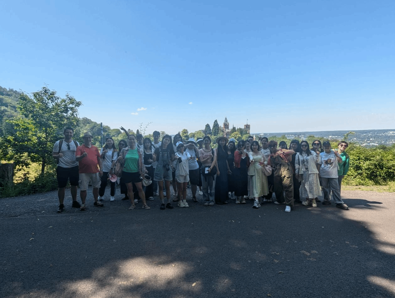 FOM大学夏令营师生踏上了一场穿越历史与自然的徒步之旅。上午,他们探访了历史悠久的龙堡,这座古堡如同一部生动的历史书,让师生们深入了解了德国及欧洲中世纪的历史脉络与建筑精髓。午后,团队移步至莱茵河畔,漫步于风景如画的岸边,沉醉于德国的自然之美与文化底蕴之中。随后,一行人访问了联合国议会厅,近距离感受了全球政策制定与国际交流的舞台,拓宽了对国际事务的认知。行程的高潮是探访贝多芬故居,这位音乐巨匠的灵感之地让师生们深刻体会到音乐的力量与不朽的艺术价值。一日之间,从古堡到河流,从国际组织到音乐殿堂,FOM团师生不仅领略了德国的自然风光,更深刻理解了其丰富的历史文化与国际影响力,为他们的海外交流之旅增添了难忘的一笔。