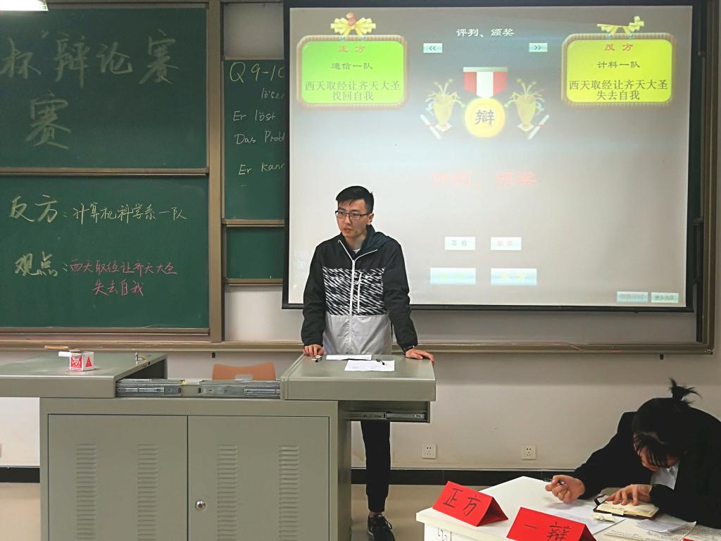 思维的碰撞产生睿智的火花,台上的风采辩出真实的自我!通信一队与计科一队从最开始的“齐天大圣还是斗战胜佛?”浅显的名号之争,到后来“性格的转变带来的影响究竟是否为良性?”深入的剖析思考,双方引经据典、据理力争,以“失去”和“找回”为线索层层递进,严丝合缝的思维逻辑无不彰显两队选手思考的深度。